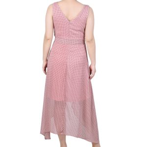 Petite Long Sleeve Clip Dot Chiffon Dress With Smocked Waist