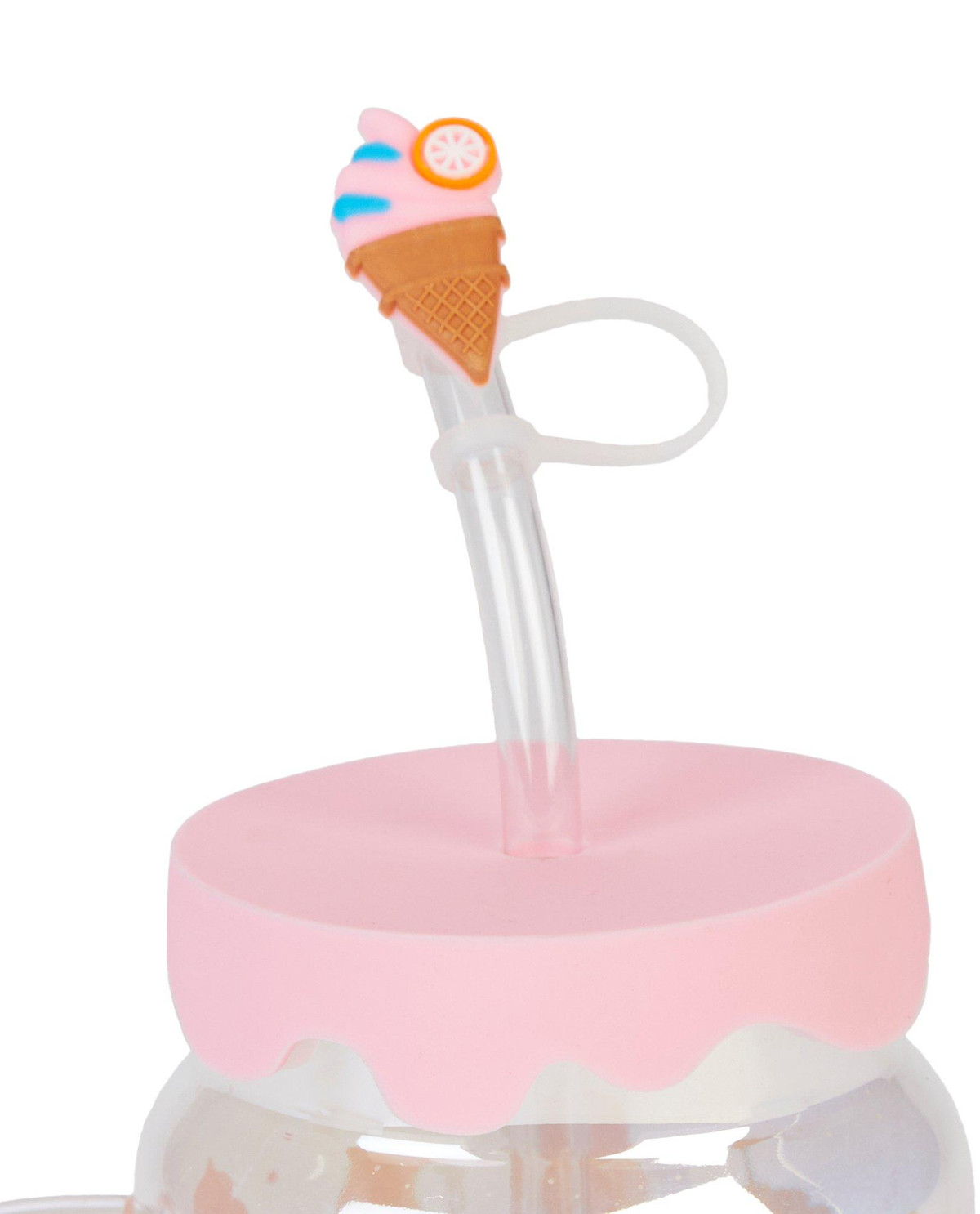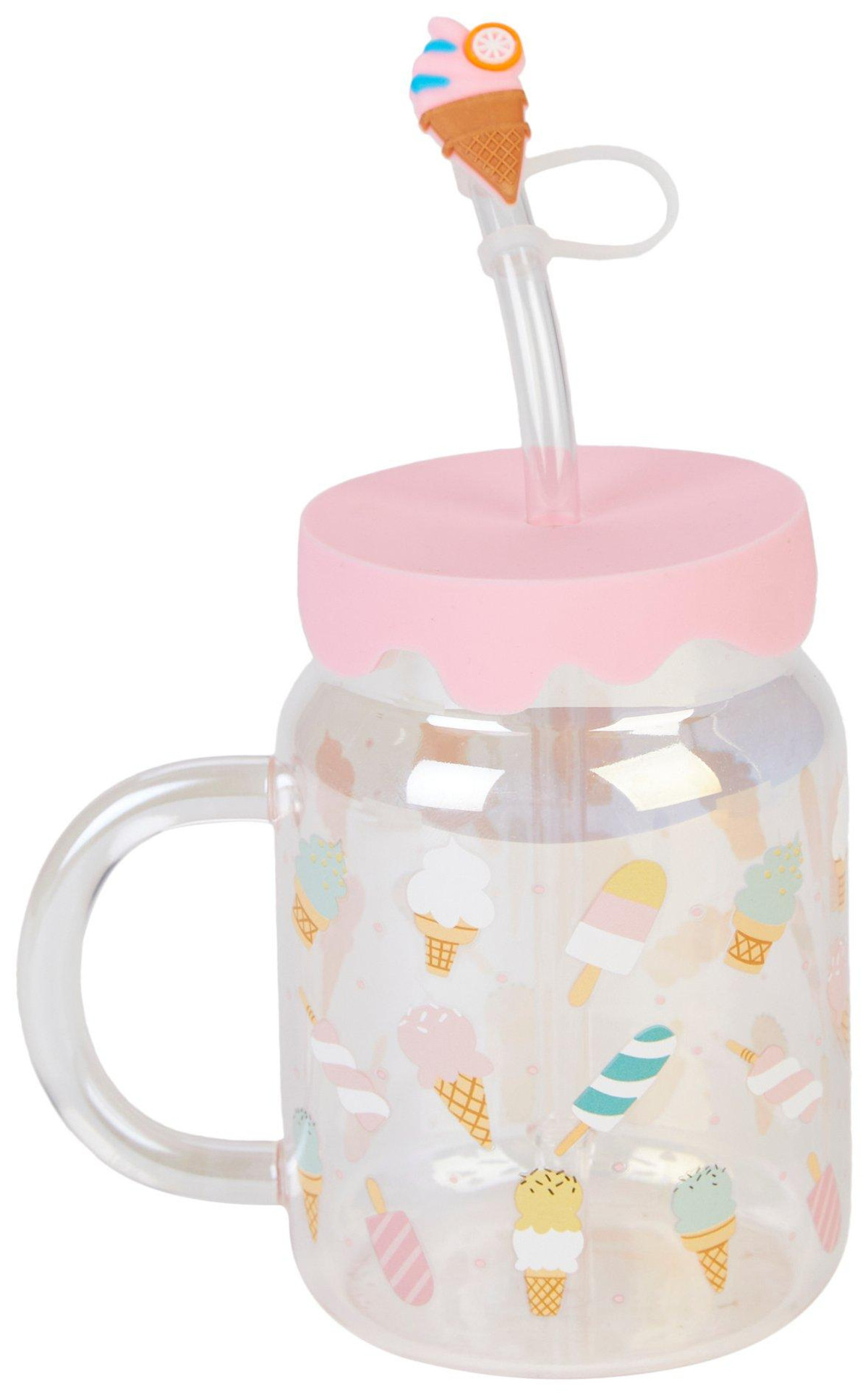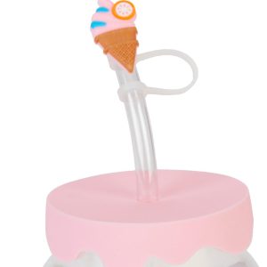 Indulge in the perfect summer sipper with this glass tumbler featuring playful ice cream cone designs. Complete with a matching lid and a straw topped with an ice cream cone accent, its ideal for enjoying chilled drinks with a touch of sweetness and fun.