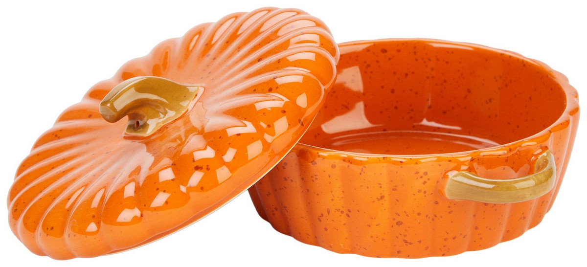 Elevate fall presentations with the 10 Strawberry Street 8 in Ceramic Pumpkin with Lid. Finished in speckled orange, it features side handles and a removable top that lifts easily by the sculpted stem. Ideal for serving soups, sides or festive treats at seasonal gatherings. Microwave, oven and dishwasher safe for convenient use and cleanup.