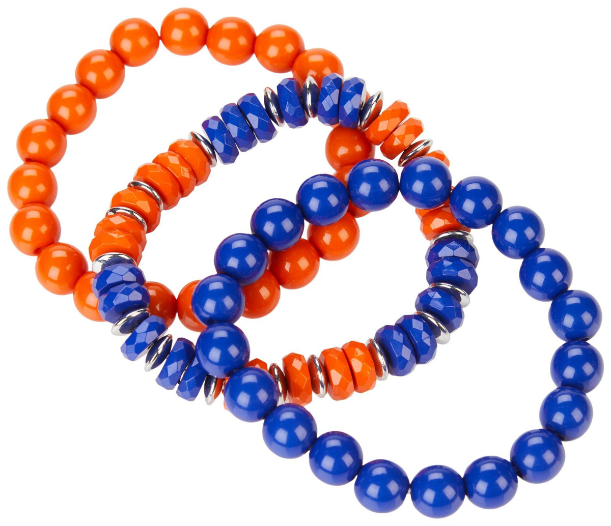 Show your team spirit with this three pack of UF Gators beaded stretch bracelets. Each bracelet features vibrant team colors and a comfortable stretch fit, making them perfect for game day or everyday wear. Layer them together or wear individually to add a bold touch of Florida pride to any outfit.