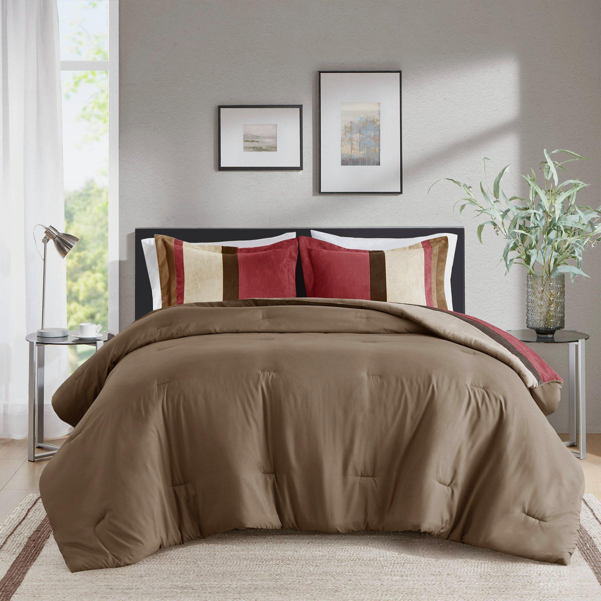 Upgrade your bedroom with the 510 Design Boulder Stripe Comforter Set. Crafted from premium faux suede, this pieced bedding features a transitional stripe pattern and elegant border design. Lightweight with soft polyfill for year-round comfort, its durable, cozy, and includes overlapping shams to keep filling in place.