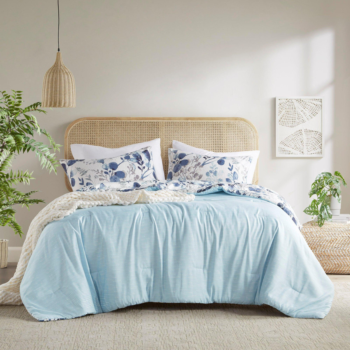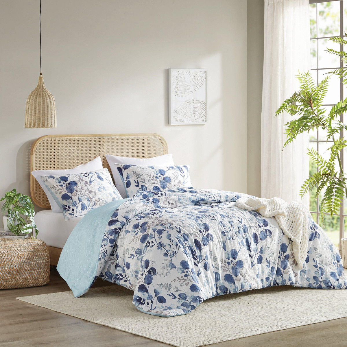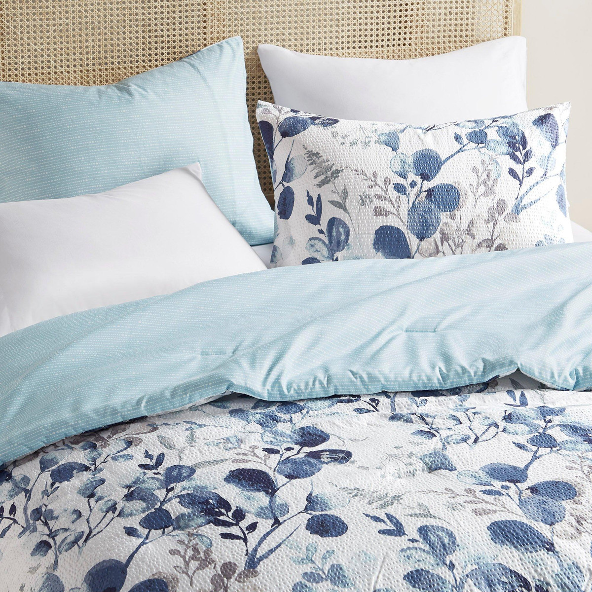 Bring farmhouse charm to your bedroom with the 510 Design Gabby Floral Seersucker Comforter Set. Made from textured microfiber, this lightweight set features a breathable floral design with a reversible striped print for versatile style and year-round comfort.
