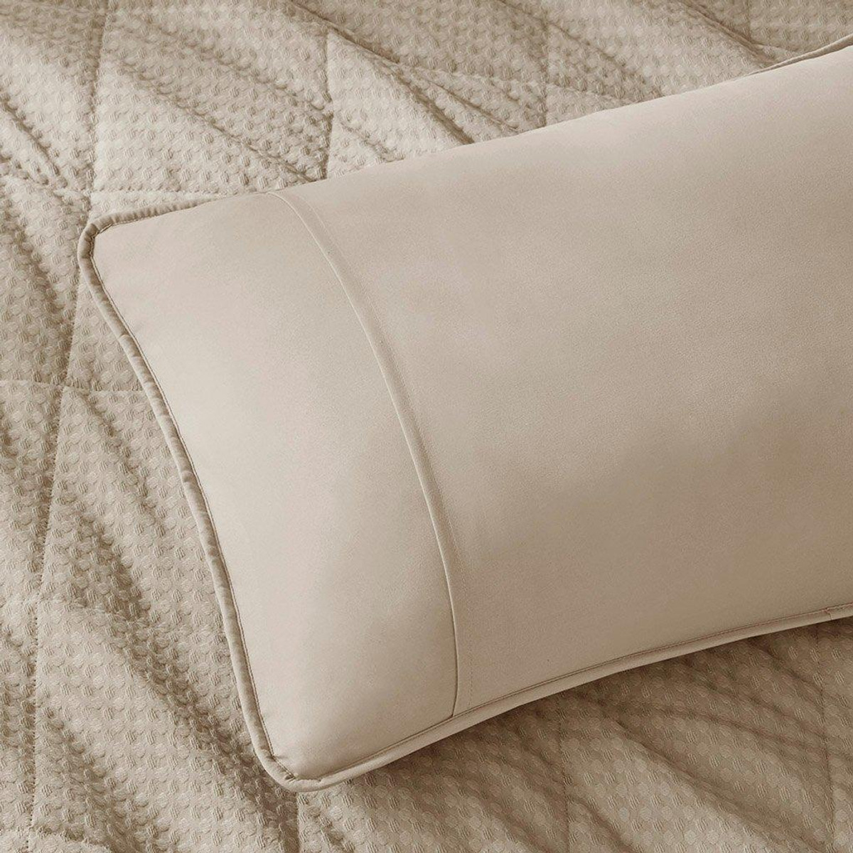 Elevate your bedroom with the 510 Design Mina Quilt Set, featuring a modern waffle weave texture for a stylish, cozy look. Lightweight and breathable, this soft quilt offers year-round comfort with a chic, quilted design. Perfect for contemporary or classic décor, it blends elegance and function effortlessly.