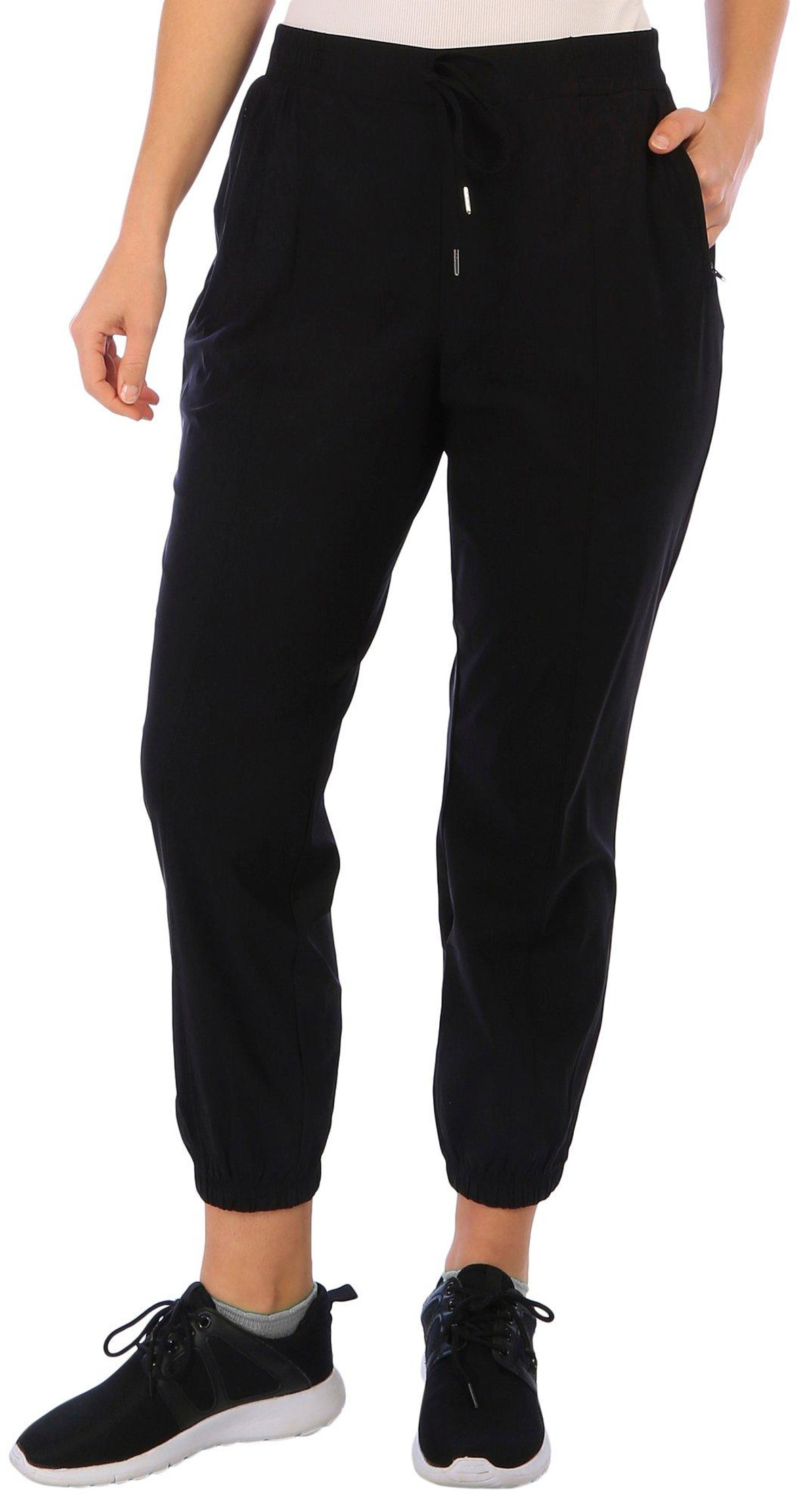 These hybrid joggers feature a solid color design on soft midweight knit and woven fabric, elastic waistband with drawstring for comfort fit. Inseam: 28, Rise: 9 1/4, Leg Opening: 4 3/4. 95% Recycled Polyester, 5% Spandex