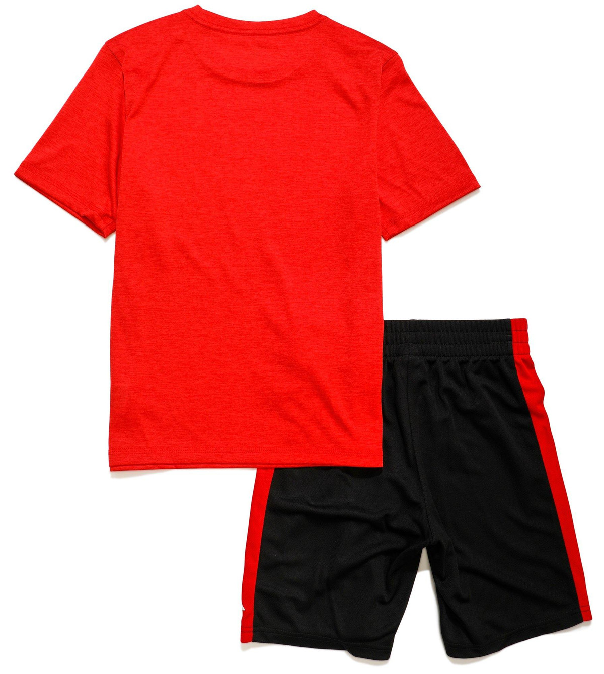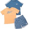 This Adidas 2-piece short set combines sporty style with everyday comfort. The short-sleeve shirt features bold logo stripes on the shoulders for a unique branded look, while the matching shorts offer a relaxed fit with an elastic waistband for easy movement. Whether he’s heading to the playground or just lounging at home, this set delivers iconic Adidas flair with practical design, making it a go-to choice for active kids who love to move in style.