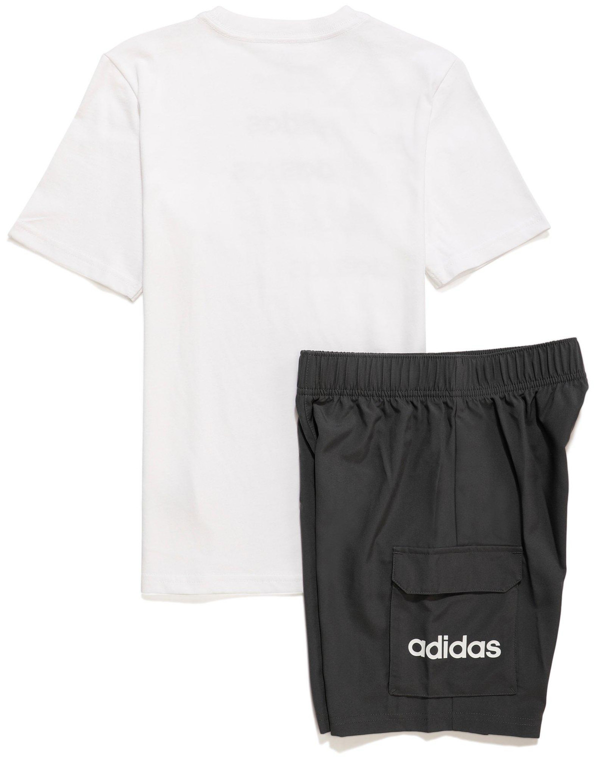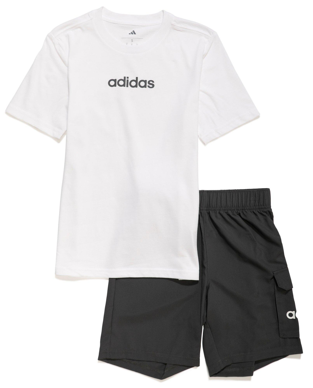 This Adidas 2 piece active wear set includes a crew neck shirt with the iconic logo and matching shorts featuring a convenient cargo pocket. Designed for style and function, it’s perfect for everyday play or sporty adventures.
