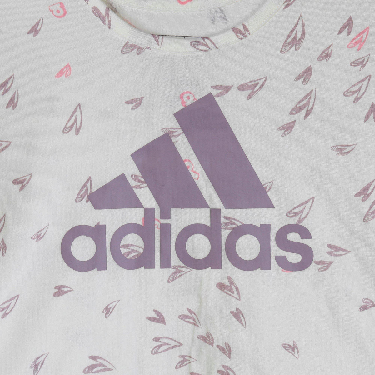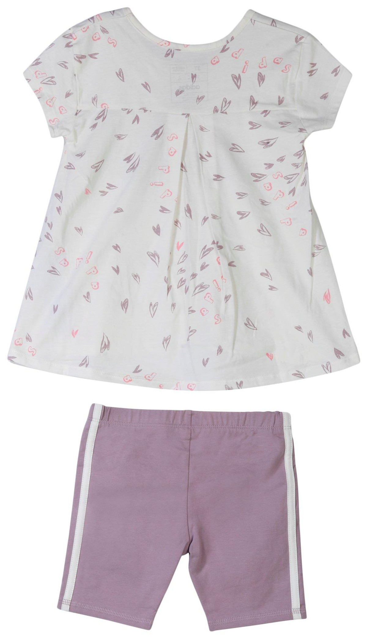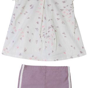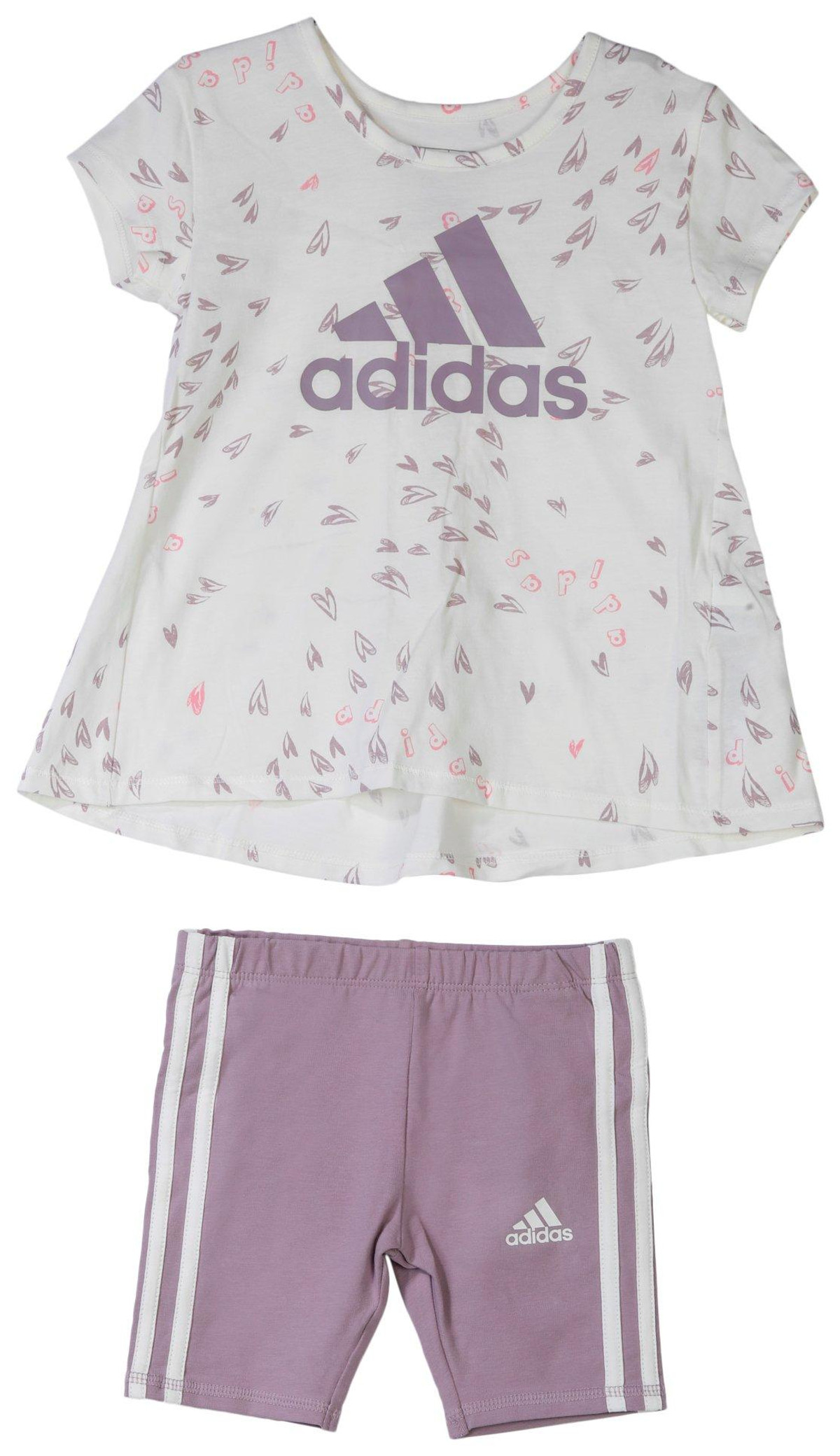 Keep her moving in comfort with this Toddler Girls Active 2 Pc Shirt Shorts Set, featuring a cotton short sleeve shirt with a heart print and logo on the front, paired with cotton/elastane shorts detailed with side stripes. Ideal for play, casual wear, and warm-weather activities.