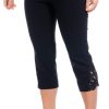 Stay stylish and comfortable in these breezy capris, featuring an easy pull-on waistband, handy front patch pockets, and chic button-tab accents for a touch of charm. Mid rise, pull-on styling and a 19 inch inseam.