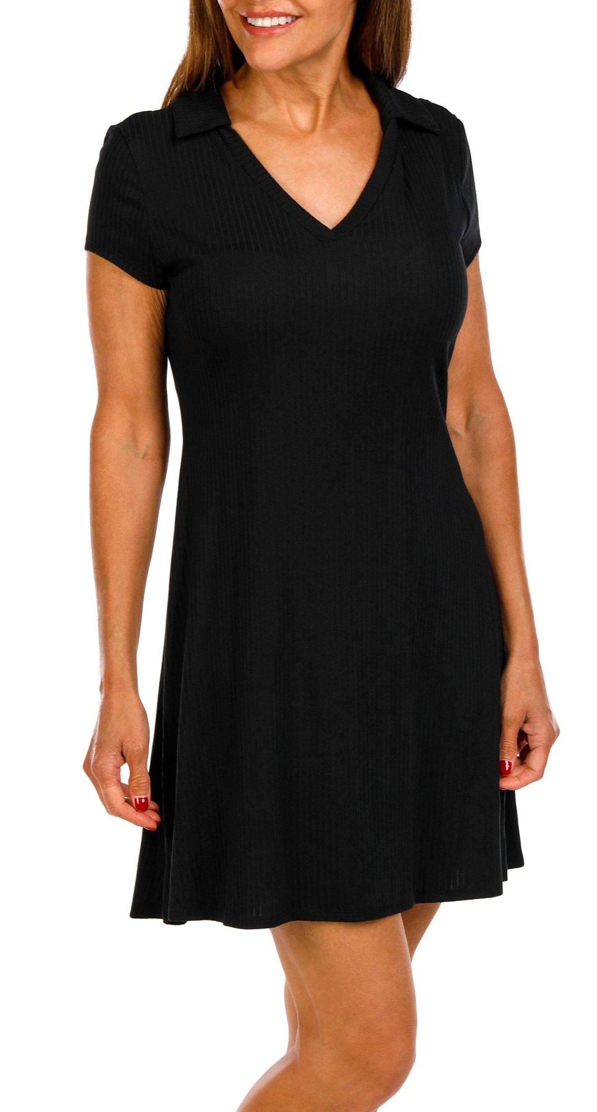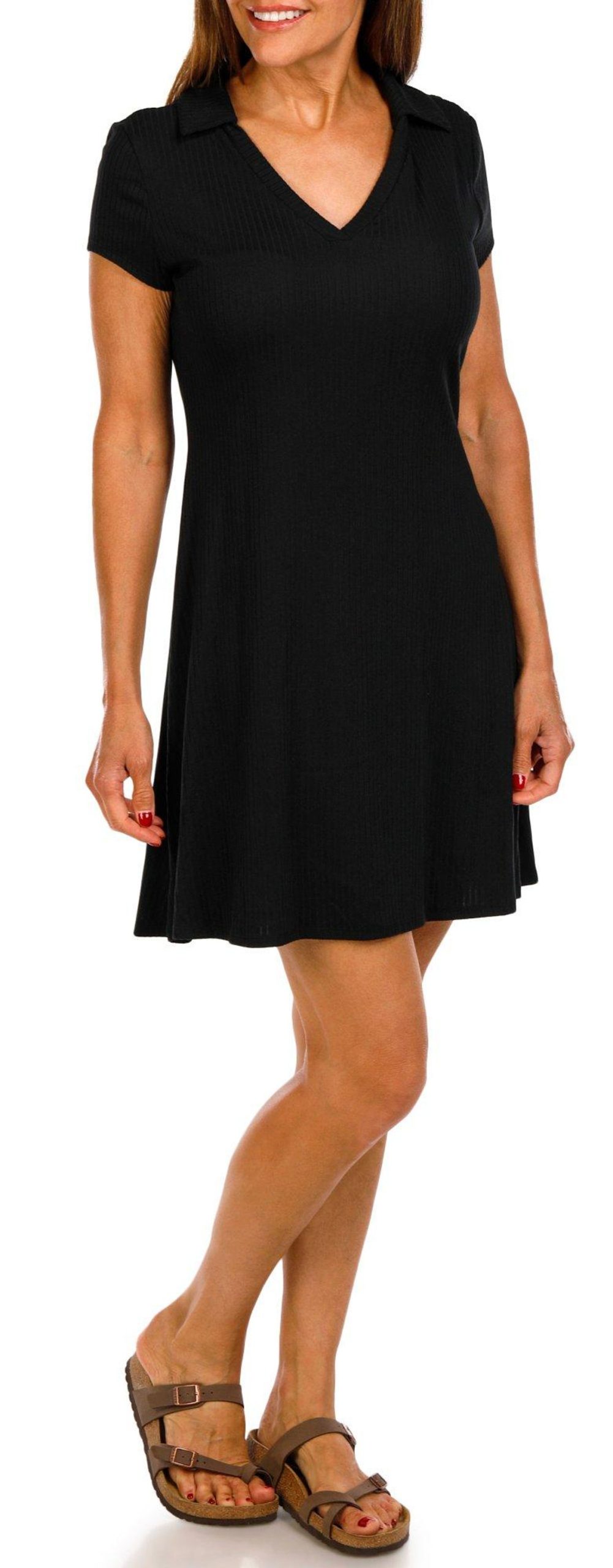 Effortlessly stylish and endlessly comfortable, the Women’s Short Sleeve Ribbed Polo Dress features a flattering flowy silhouette, collared V-neckline, and short sleeves. The soft, ribbed fabric offers breathable stretch and easy movement. Whether you’re heading to brunch or a summer gathering, this versatile dress is your go-to for polished yet relaxed warm-weather style. Measures approximately 36 in. Fabrication is 92% polyester, 8% spandex.