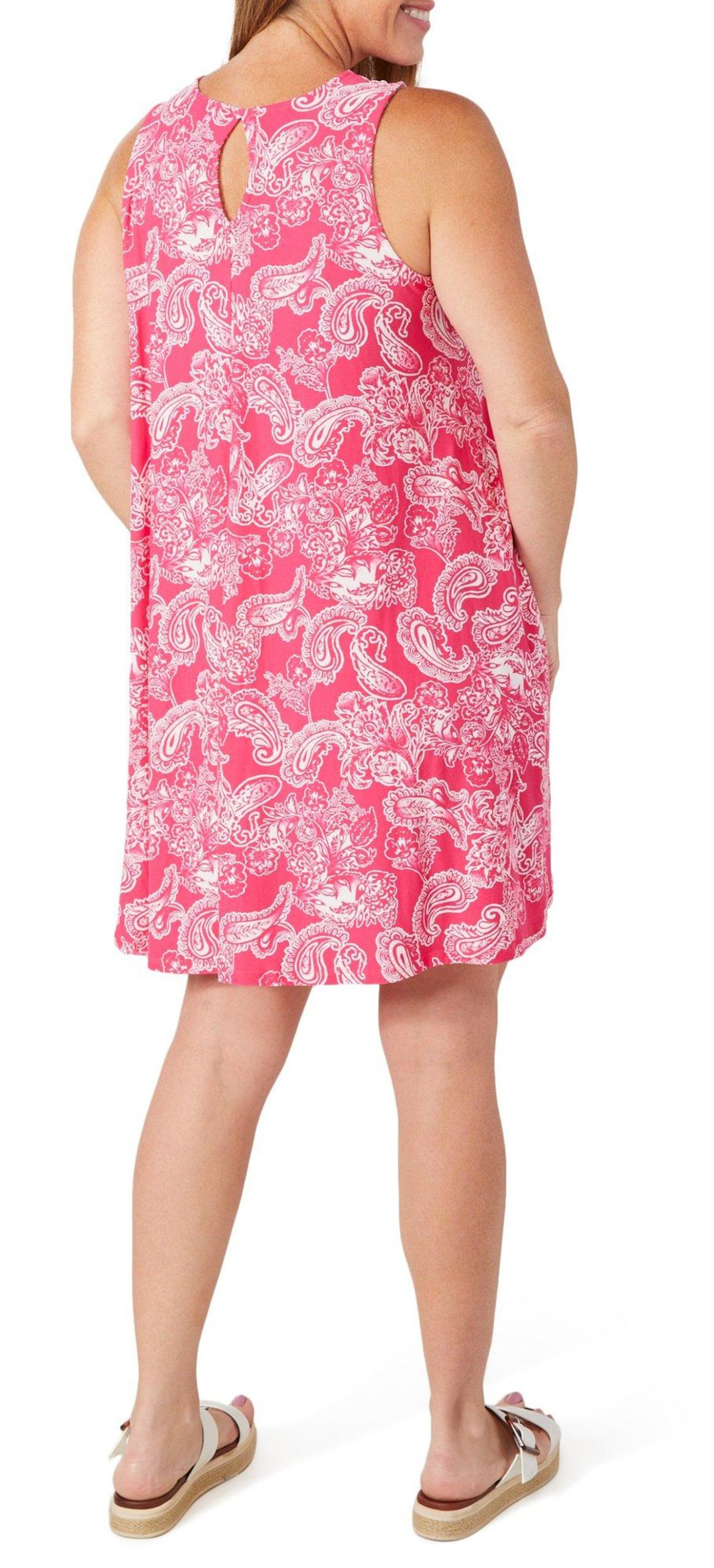The Women’s Sleeveless Print Swing Dress combines comfort and style with its flowy silhouette and vibrant print. Designed to flatter every body type, this dress offers a relaxed fit and soft fabric that moves with you. Perfect for warm weather, its ideal for casual outings or dressing up for special occasions. Fabrication is 92% polyester, 8% spandex.