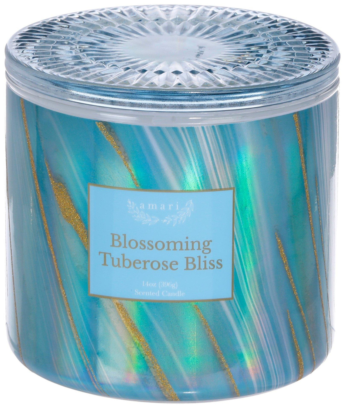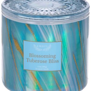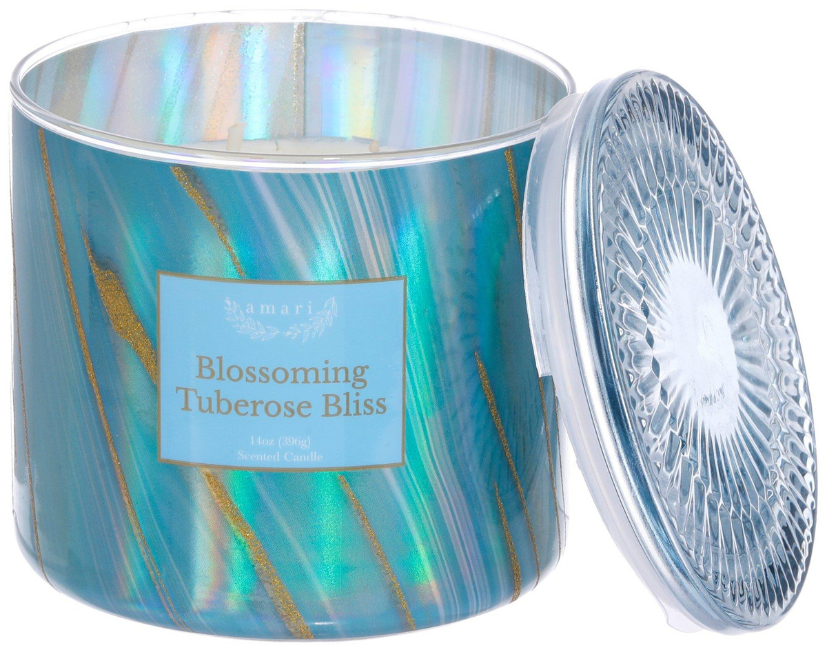 Surround yourself with serenity, with this 14 oz 3-Wick Blossoming Tuberose Bliss Soy Candle. The scent s a lush floral fragrance starring the intoxicating scent of tuberose, complemented by creamy white petals, soft woods, and subtle green undertones. Perfect for bringing a fresh, floral ambiance to any space, this candle doesnt just fill your room with fragranceit enhances your decor and elevates your mood. Measures approximately 4 in x 4 in.
