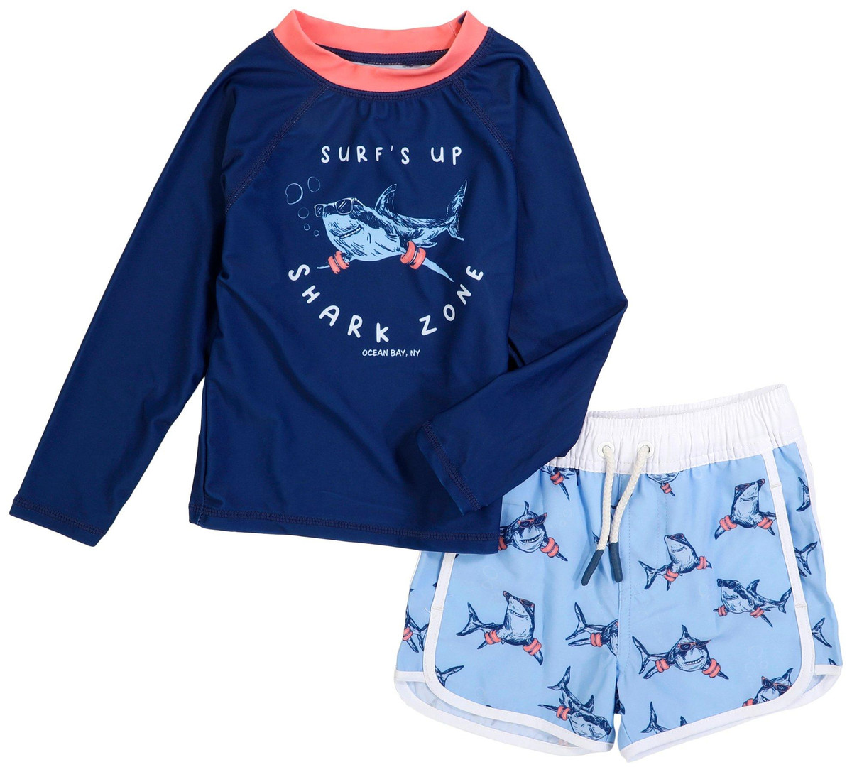 Andy & Evan 2-Piece Toddler Boys Navy Shark Graphic Swim Set