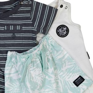 This adorable baby set is perfect for cozy comfort and sweet style. It includes a soft short sleeve romper with snap buttons for easy changes and a sleeveless romper featuring an embroidered dog and patch design. Made from breathable fabric, this set is ideal for warm days and playful adventures.