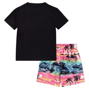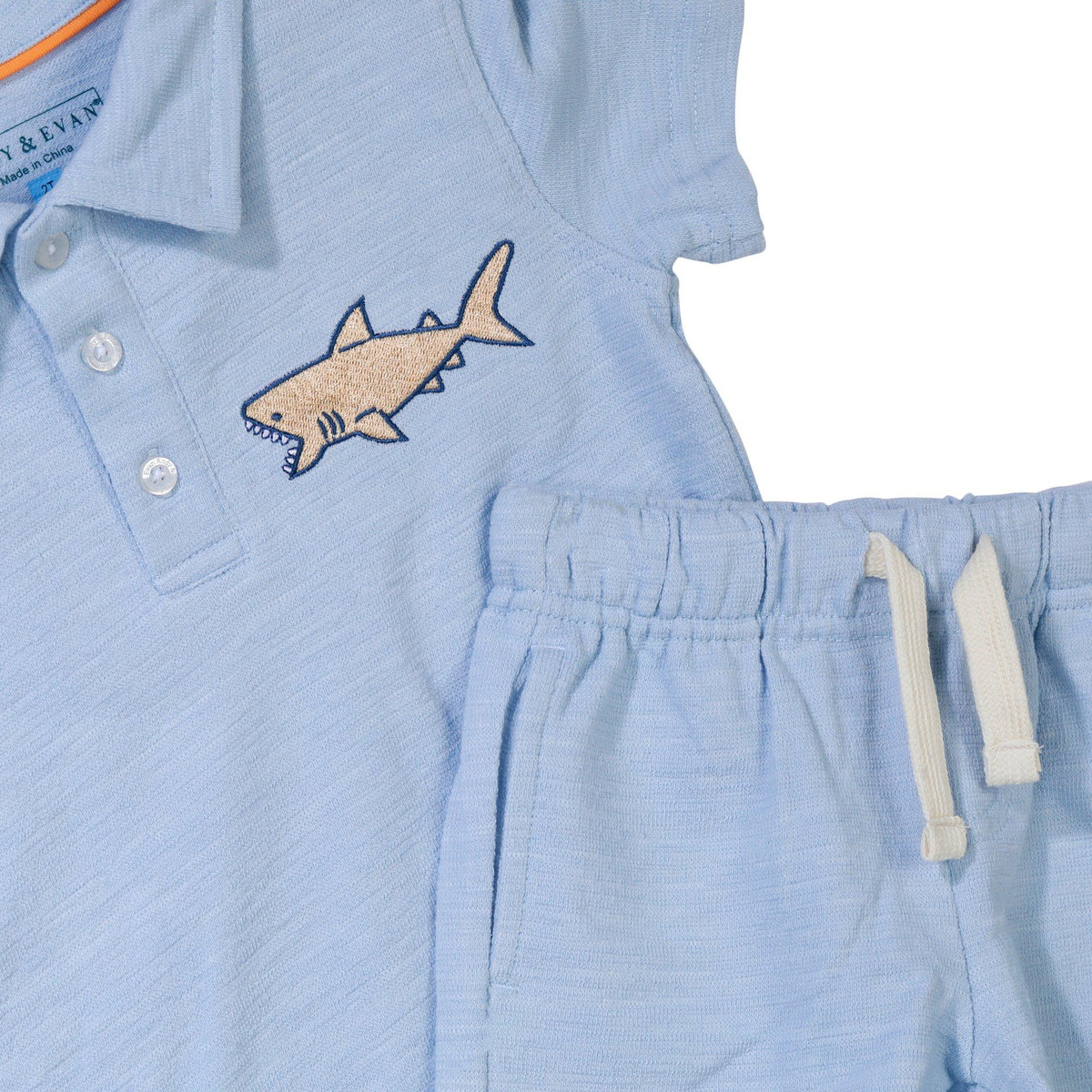 This Any & Even 2-piece set features a collared short sleeve shirt with a playful shark design on the left chest, paired with drawstring shorts for a relaxed fit. Made from lightweight fabric, it’s perfect for warm-weather outings and beachside fun. The casual style and ocean-inspired detail make it a standout choice for summer adventures.