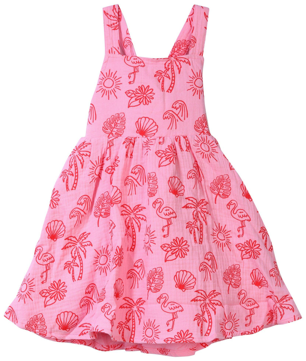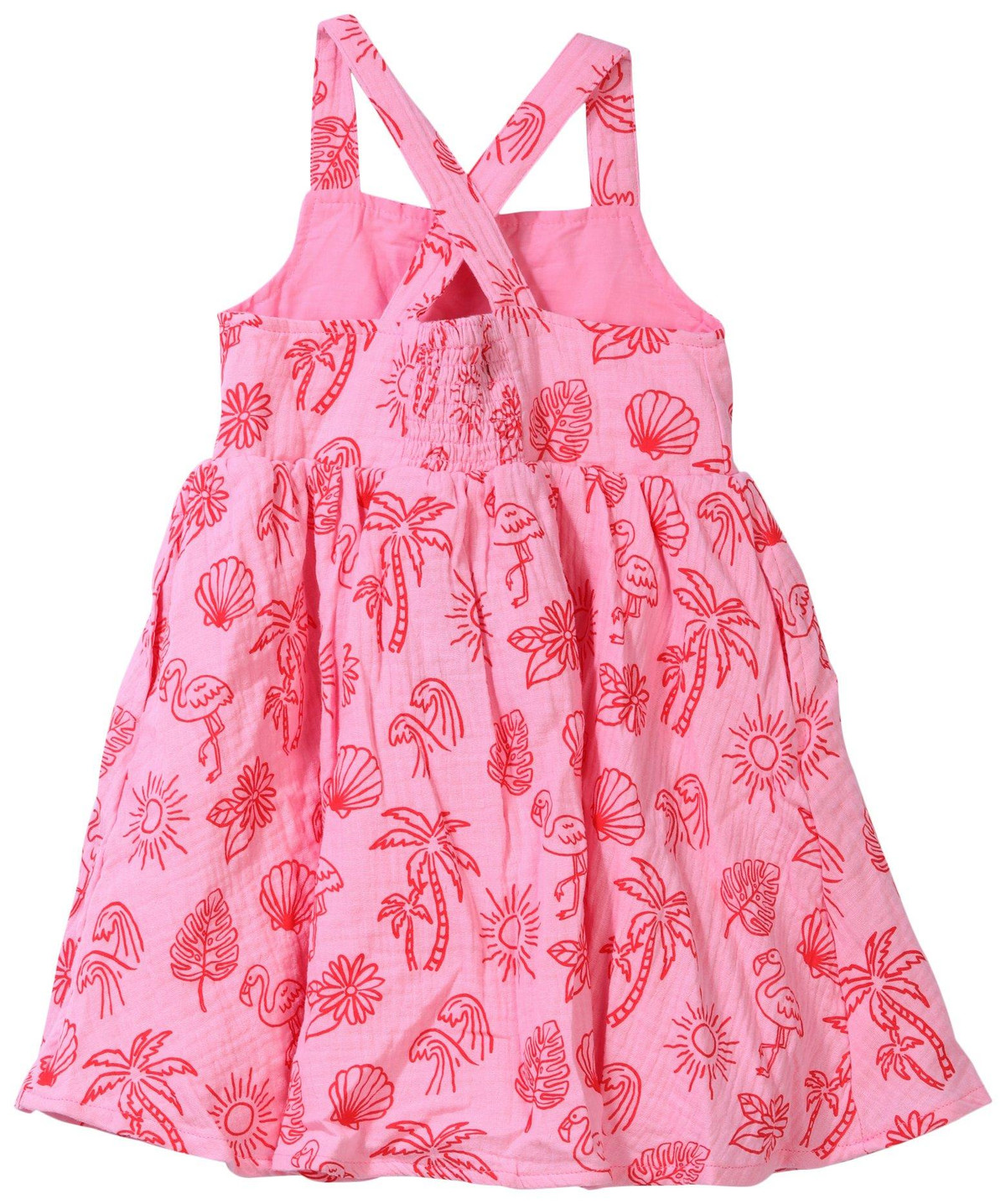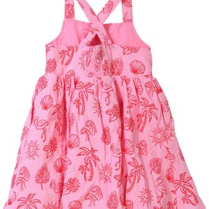 This 100% cotton smock dress from Andy & Evan is a tropical delight for toddler girls. Featuring a playful palm tree and flamingo pattern, its perfect for sunny adventures. The skirt is lined for added comfort and puffiness, giving it a breezy, princess-like silhouette. Stylish moms love its soft feel, vibrant design, and effortless charm for any warm-weather occasion.