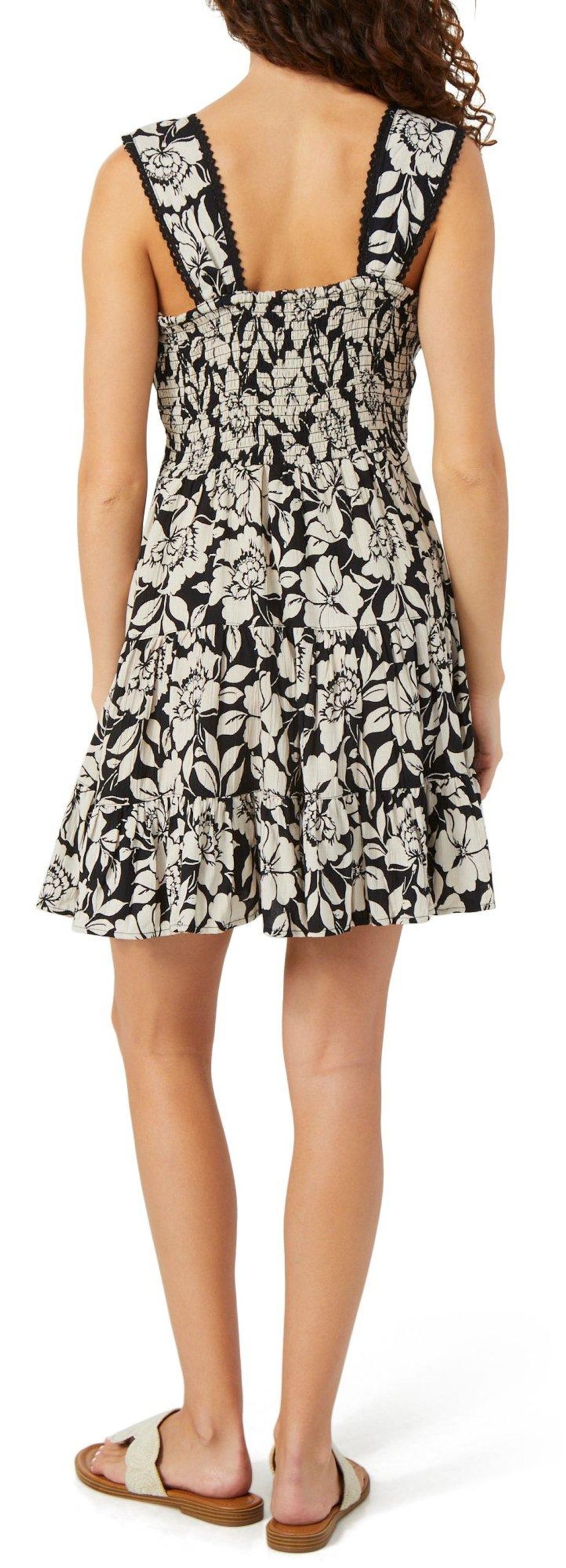 Stay effortlessly stylish in the Juniors Sleeveless Floral Mini Dress. Featuring a vibrant floral print, flattering V-neckline, sleeveless design, and a playful ruffle hem, this mini is perfect for warm-weather outings and weekend fun. Fabrication 100% rayon