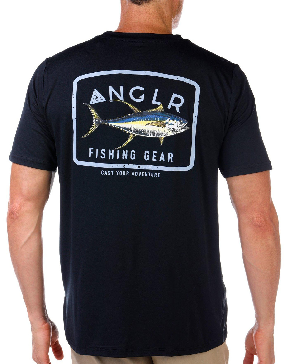 Gear up for the outdoors with the Men’s Fishing Gear Performance T-Shirt. Crafted from breathable, lightweight fabric, it features a classic crew neckline and short sleeves for all-day comfort. Built-in reel block sun protection keeps you covered during long days on the water. Fabrication 95% polyester, 5% spandex
