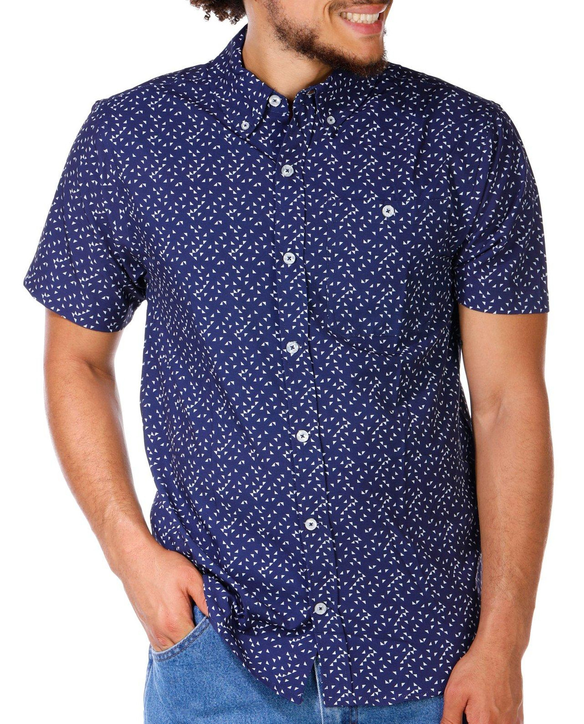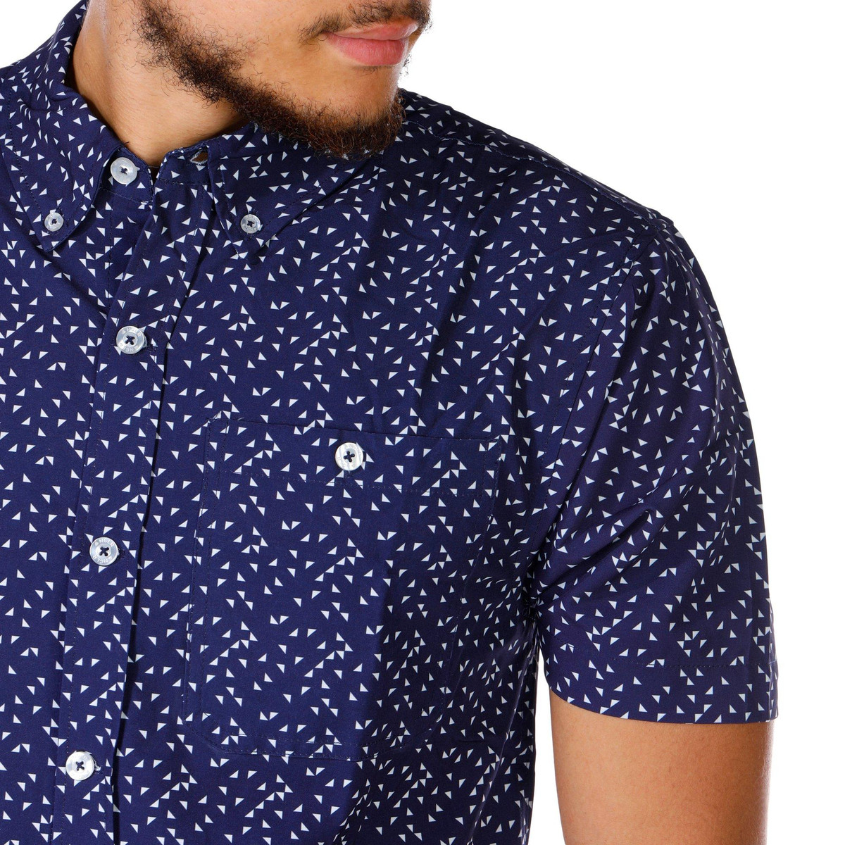 Breathe easy in our Men’s Short Sleeve Mini Triangles Button Down Shirt. Featuring a subtle allover triangle print, classic collar, and lightweight, breathable fabric, it is perfect for warm days and casual style with a modern twist. Fabrication 90% polyester, 10% spandex