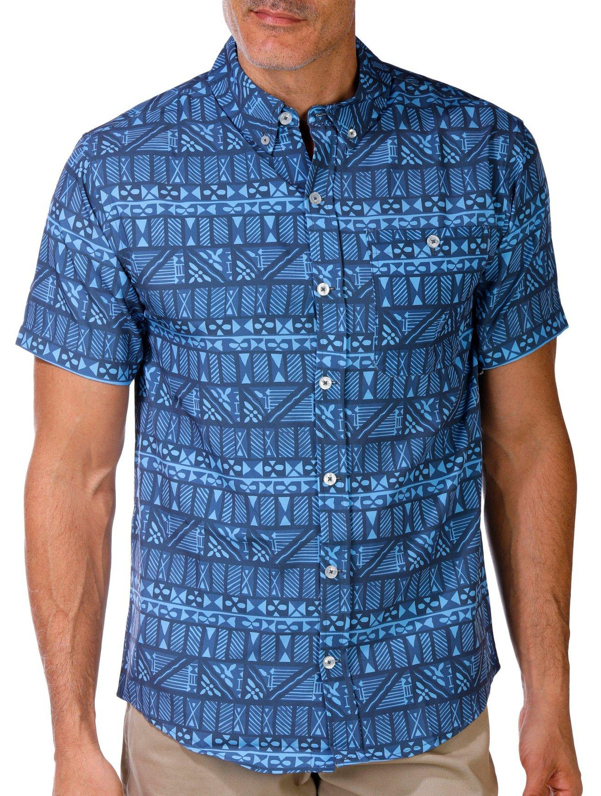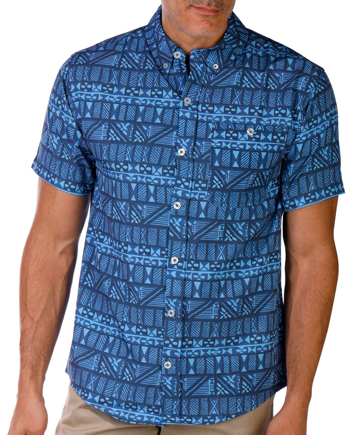 Explore in style with the Men’s Short Sleeve Native Block Button Down Shirt. Featuring a native block graphic print, button-down front, and chest slip pocket, it is crafted from breathable, stretchy fabric with built-in sun protection. Fabrication 90% polyester, 10% spandex