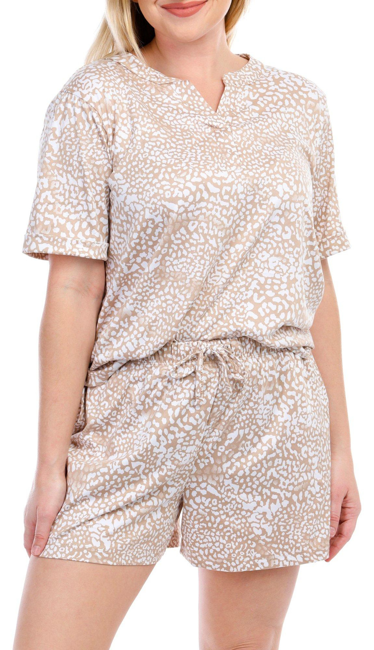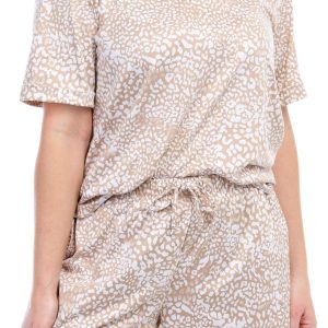 Relax in style with our 2-piece Sleepwear Set. This set features a chic animal print and includes a short sleeve collared top paired with drawstring boxer bottoms. The bottoms are designed with double side slip pockets for added convenience. Made from soft, breathable fabric, this sleepwear set ensures a comfortable and restful night’s sleep. Perfect for lounging or sleeping, it combines elegance and comfort effortlessly. Fabrication is 93% polyester and 7% spandex.
