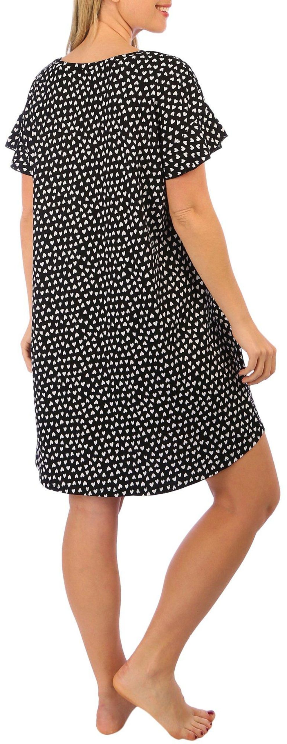 Stay cozy in our Short Sleeve Heart Print Sleep Dress! Made from a blend of polyester and spandex, this pajama dress features a cute all-over heart print, short sleeves and crew neckline. Length is 35 inches.