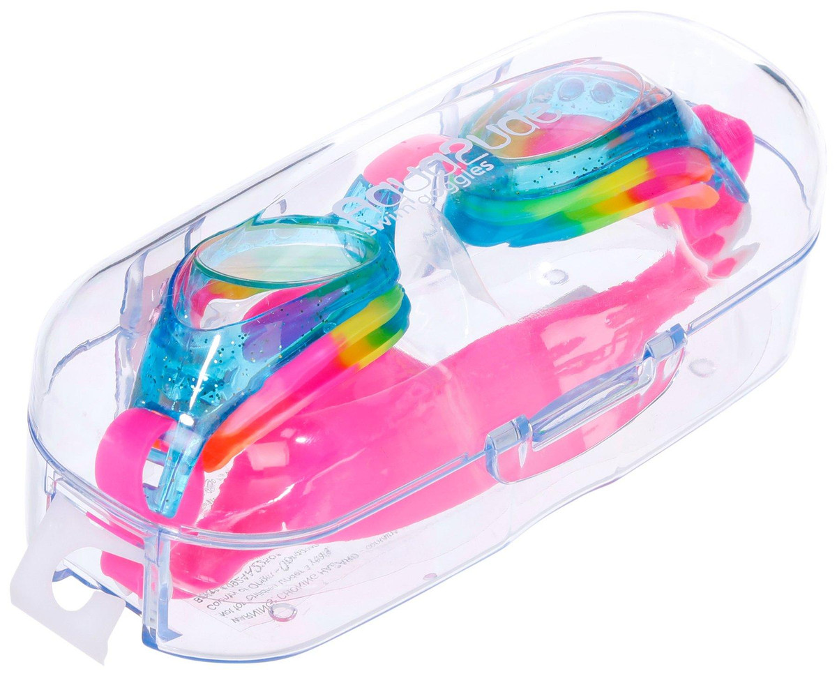 Explore underwater in style with the Girls’ Glitter Topstone Swim Goggles. These goggles feature a 100% silicone strap and eye gasket for a comfortable fit, while the antifog lenses give you a clear view. The adjustable strap offers secure wear, and the UV protection shields against the sun’s rays. Designed for ages 3 years and up