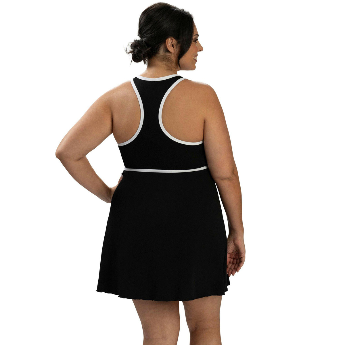 Zip into style with this flattering fit-and-flare swimsuit! Made from a comfy polyester-spandex blend, it features a zip-front for easy changes, sewn-in cups for support, and a tummy control liner for a smooth silhouette. Full bottom coverage keeps things comfy and confidentperfect for poolside fun or beachside lounging! Fabrication 91% polyester, 9% spandex.