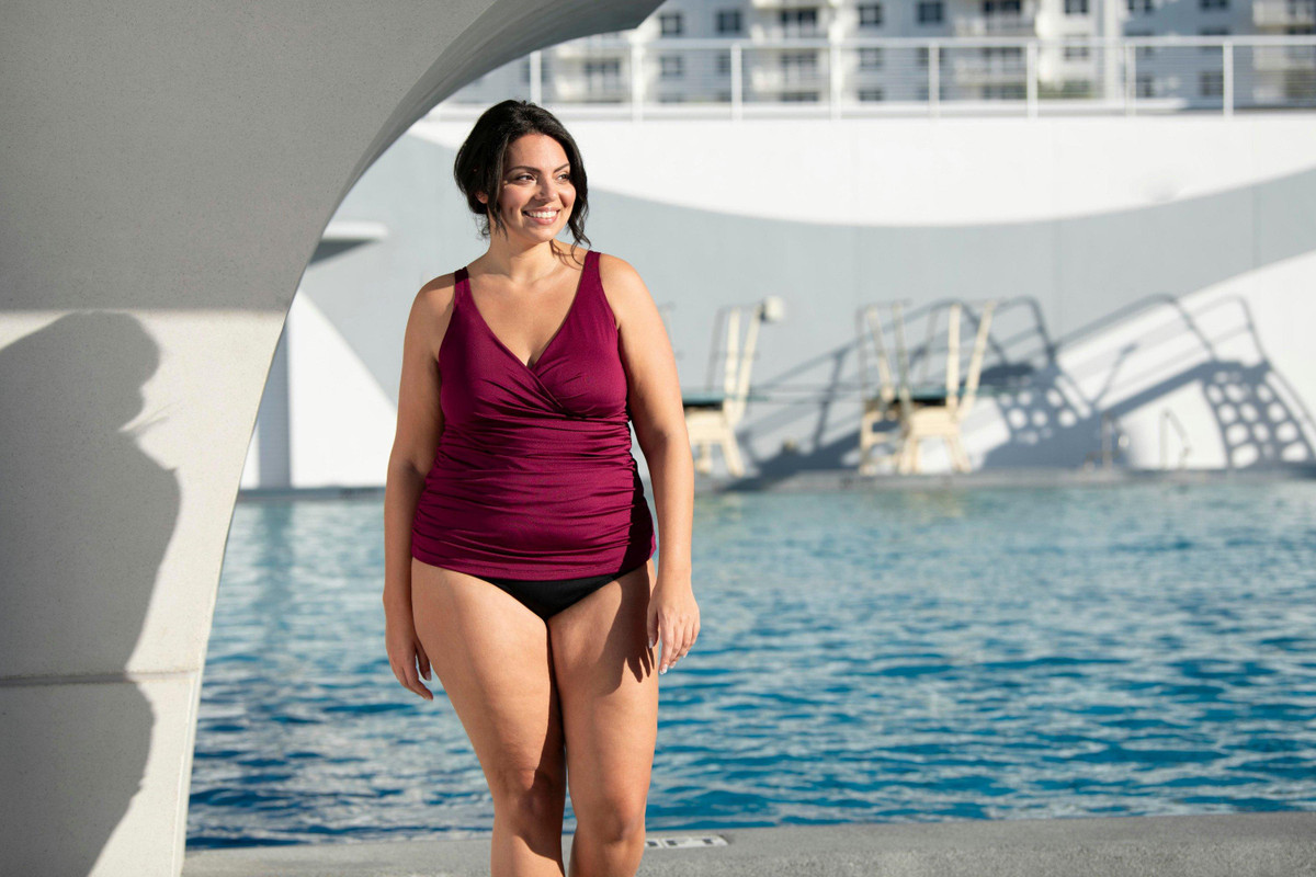 Make a splash in style with this flirty zip-front swimsuit! The fit-and-flare shape flatters every curve, while sewn-in cups and a tummy control liner keep you comfy and confident. Crafted from a soft, stretchy blend, it moves with you. Whether lounging poolside or diving into fun. Full bottom coverage means you can play all day, worry-free!