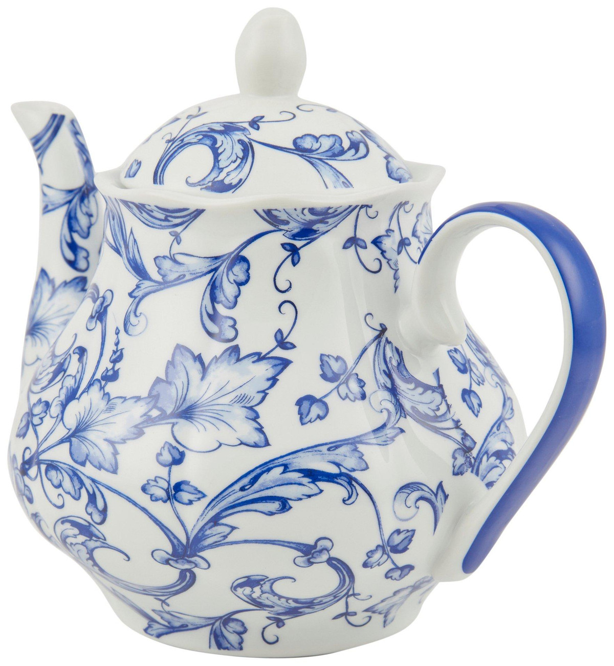 Brew in style with this elegant teapot from Ashley Grace. Featuring a delicate blue floral print, this timeless design adds charm to tea time while the sturdy ceramic build ensures lasting use. A beautiful addition to any kitchen or teaware collection. Measures approximately 6.5 in x 9 in.