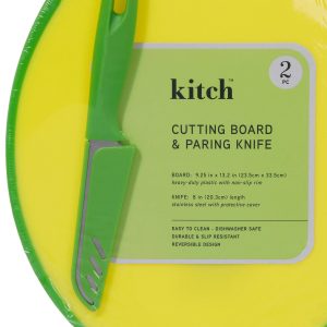 The Icon Auburn Tigers Cutting Board is a 3-pc. set that has a solid rubberwood base with a bamboo rim accent, a tempered glass lid, & a cheese knife with its own carved out area in the wood base. Measures 15.2”L x 10”W x .8”H.