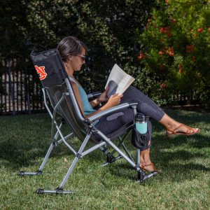The AUBURN Outdoor Rocking Chair is the a fan favorate at tailgates and backyard BBQs. Folding rocking chair with mesh cup holder in armrest; Includes carrying bag; Made of 600D PVC with steel frame; Includes: 1 Outdoor Rocking Chair, 1 Drawstring Carrying Bag with Shoulder Strap. Dimensions: 28 x 35.8 x 40.5. Weight limit 250 LBS.