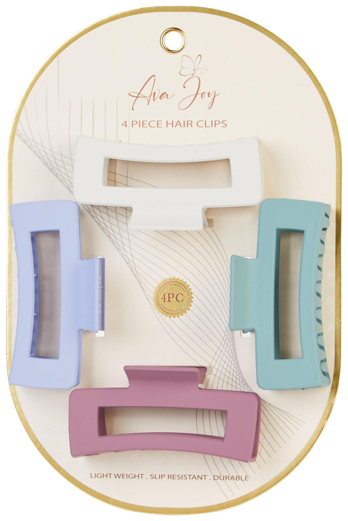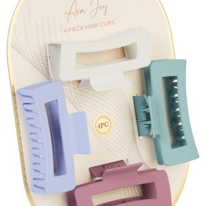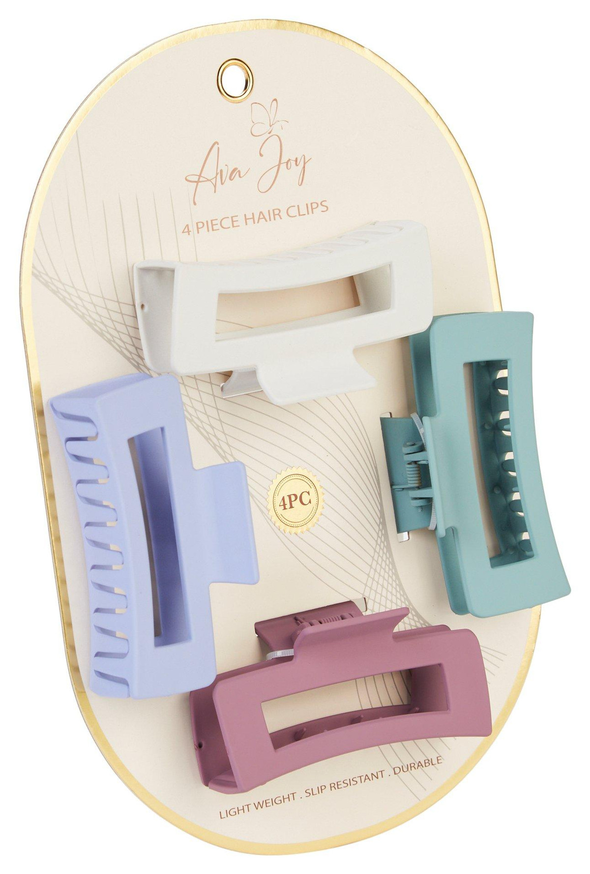 Elevate everyday styling with the Ava Joy 4 Pc Hair Claw Hair Clip Set. Each large clip features a distinct neutral tone and is designed to securely hold a full head of hair, including thick or coarse textures. The sturdy construction and classic shape offer reliable grip for both casual and polished looks. Ideal for daily wear or quick updos. Spot clean as needed.