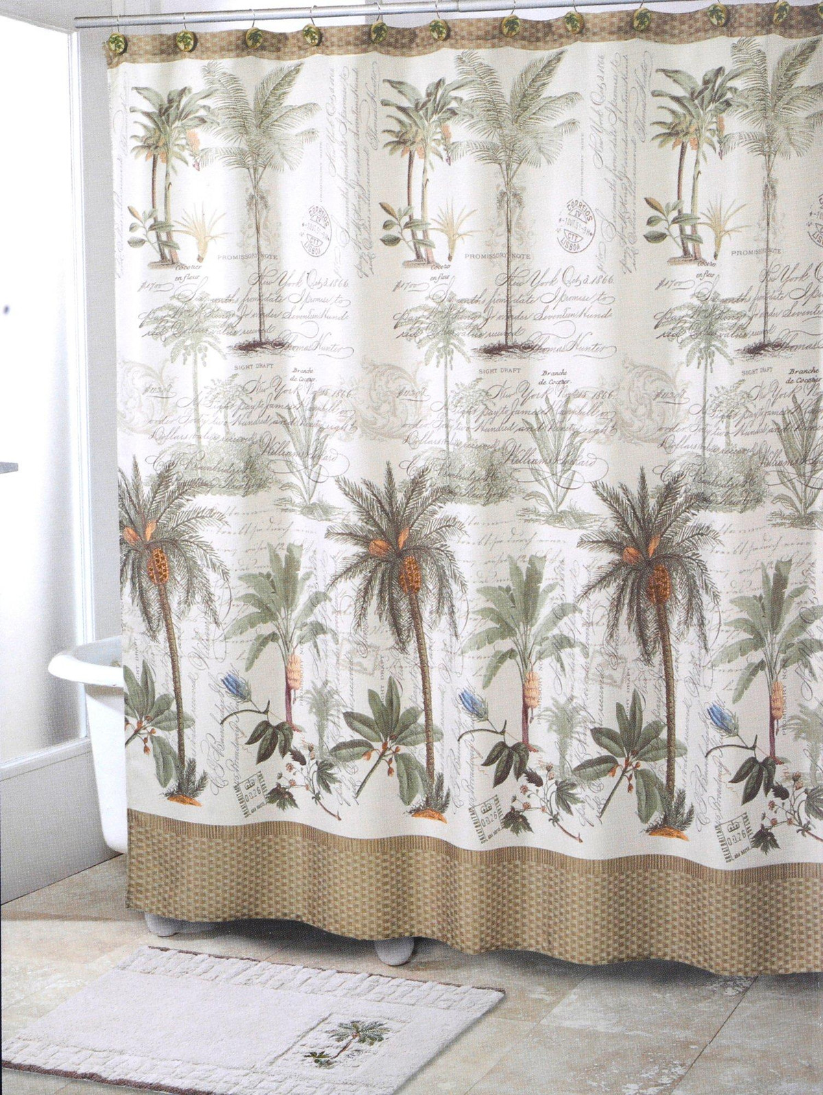 The tropical motif and soothing neutrals of the Colony Palm shower curtain brings stylish ease to your bathroom, featuring palm tree accents, script and textured details. Measures 72 in. L x 72 in. W.
