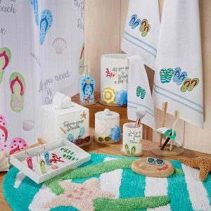 Step into summer vibes with the 20×35 Beach Mode Bath Rug. Made from 100% cotton, this fun and functional rug features a playful flip flop shape that adds a splash of coastal charm to your bathroom. Soft, absorbent, and perfect for beach lovers.