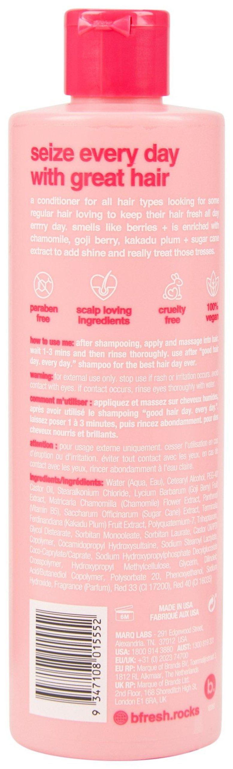 Keep hair smooth and hydrated with Good Hair Day Everyday Conditioner, infused with the sweet scent of berry. Nourishes strands without buildup, enhancing softness and shine for all hair types. Color-safe and gentle enough for daily use, it’s the perfect finish to your routine whether you’re heading to class, the office or a weekend hangout. Contains 12 fl oz.