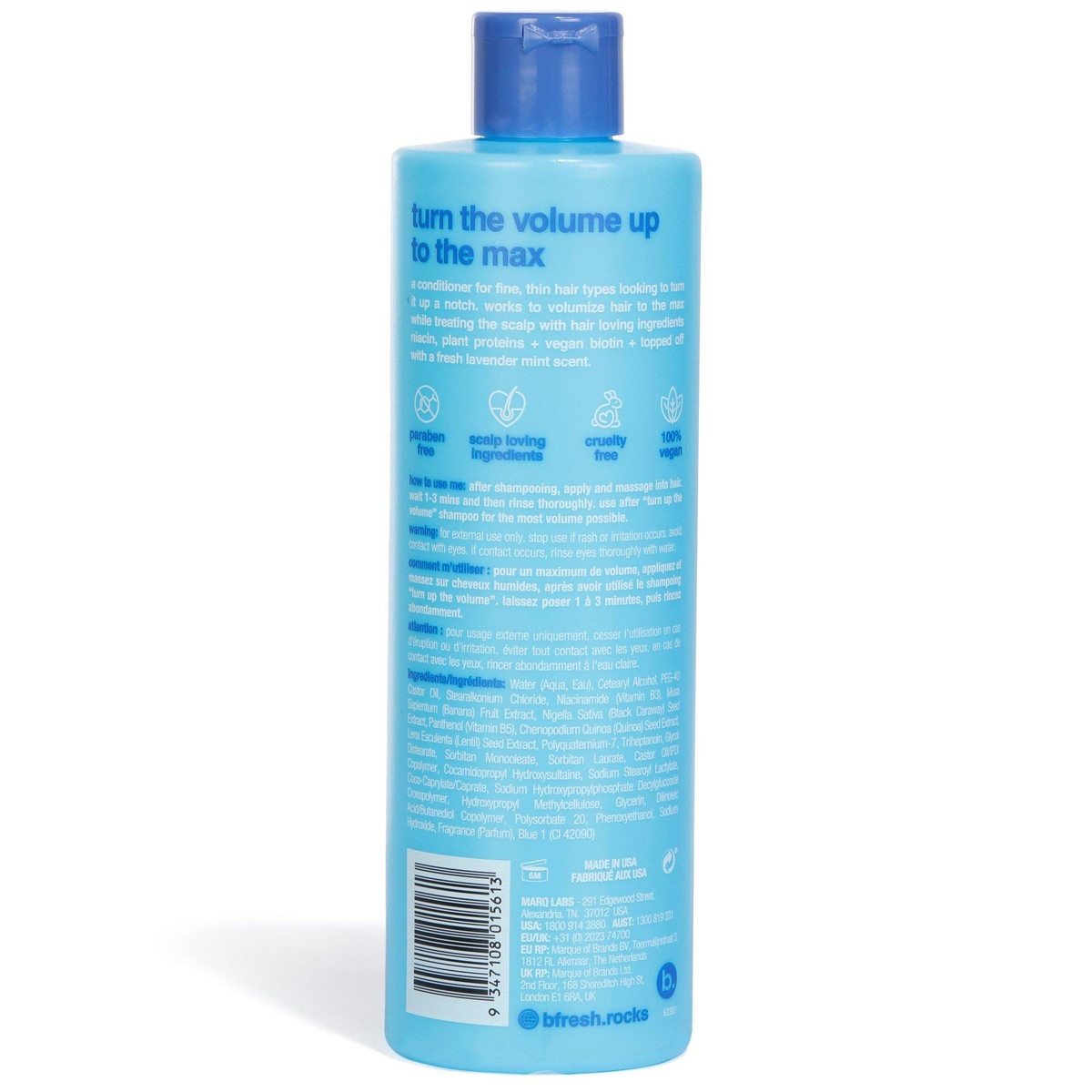 Add weightless lift and softness with Turn Up The Volume Conditioner, featuring calming lavender and energizing mint. Detangles and hydrates without weighing hair down, making it ideal for fine or limp strands. Leaves hair feeling refreshed and full of movement. Perfect for everyday use, whether you’re heading to brunch or a busy day at work. Contains 12 fl oz.