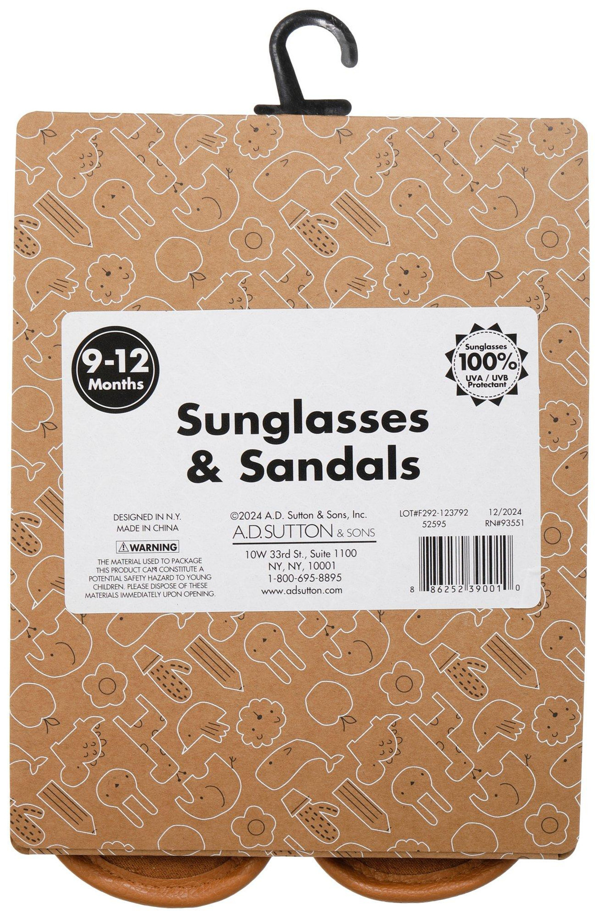 This adorable 2-piece baby sandals set includes velcro-strap sandals with a sweet embroidered bear face and matching sunglasses offering 100% UVA/UVB protection. Perfect for sunny day adventures in style and comfort!