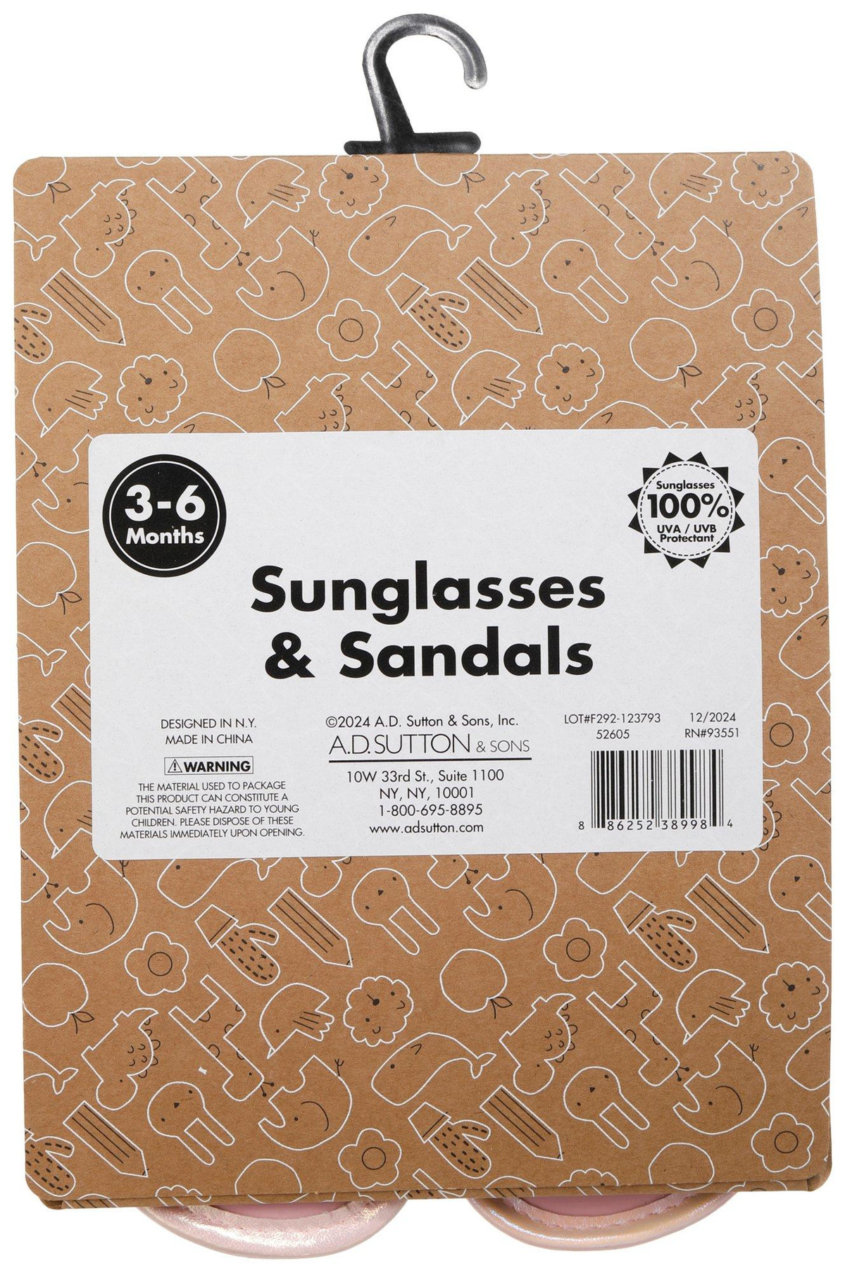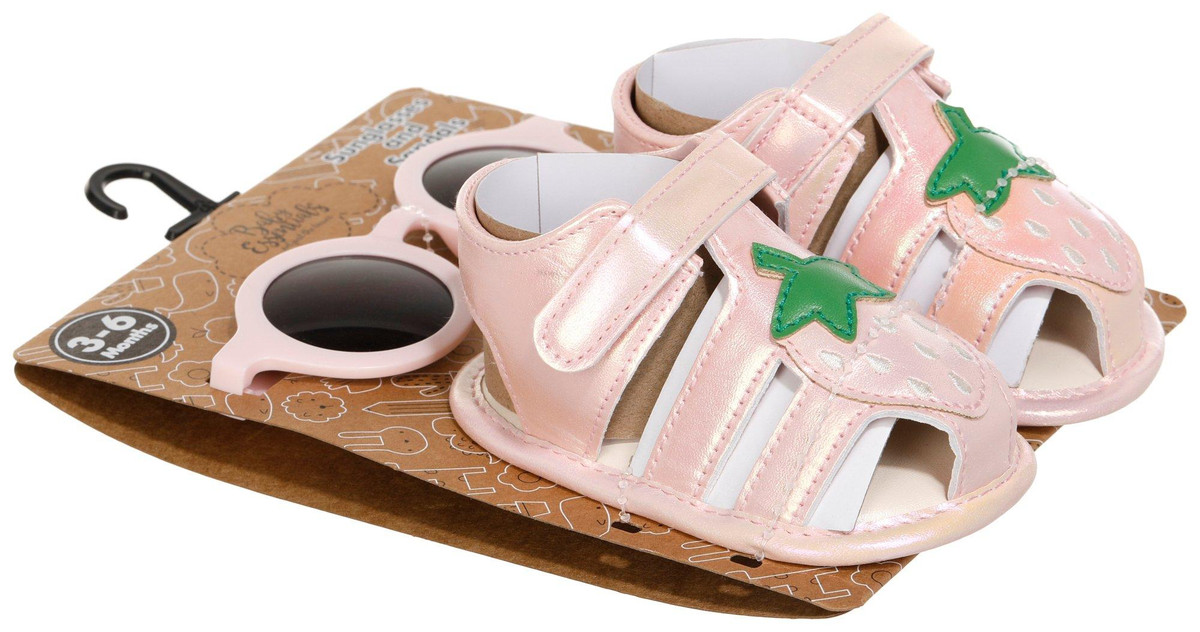 This adorable 2-piece baby girls sandals set includes velcro-strap sandals with a cute strawberry design and matching sunglasses offering 100% UVA/UVB protection. Perfect for sunny day adventures in style and comfort!