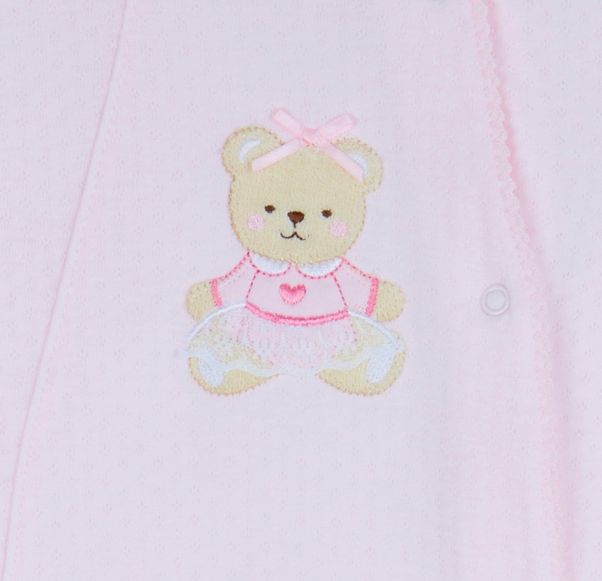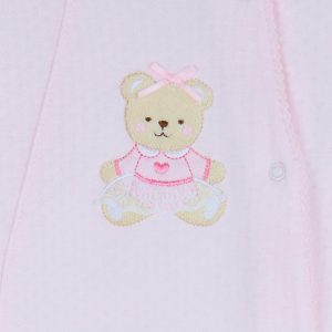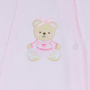 Designed to be worn for sleep or play, this baby girl footie is a newborn wardrobe essential. Outfit features easy-change snaps from neckline to feet, a cute bear applique and novelty bear toes.