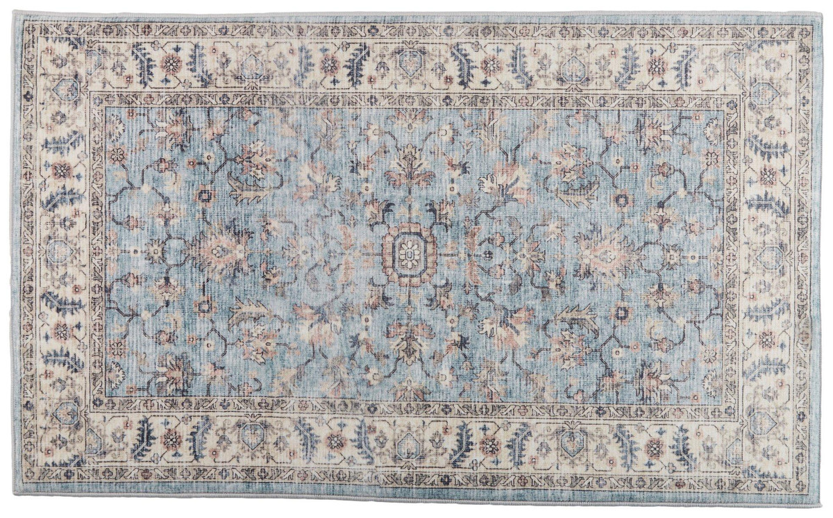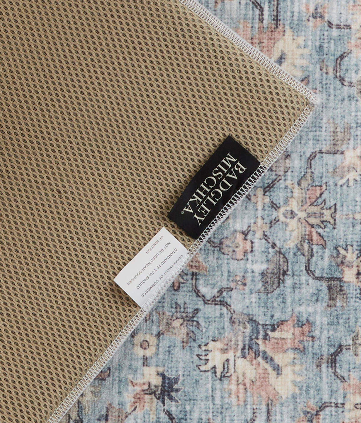 Enhance comfort and style with this 27×45 Memory Foam Blue Blush Accent Rug, crafted from 100% polyester with a soft memory foam core. Features an anti-slip backing, stain resistance, and pet-friendly design. Machine washable for easy care in high-traffic areas. Measures approximately 27 in x 45 in. Fabrication is 100% polyester.