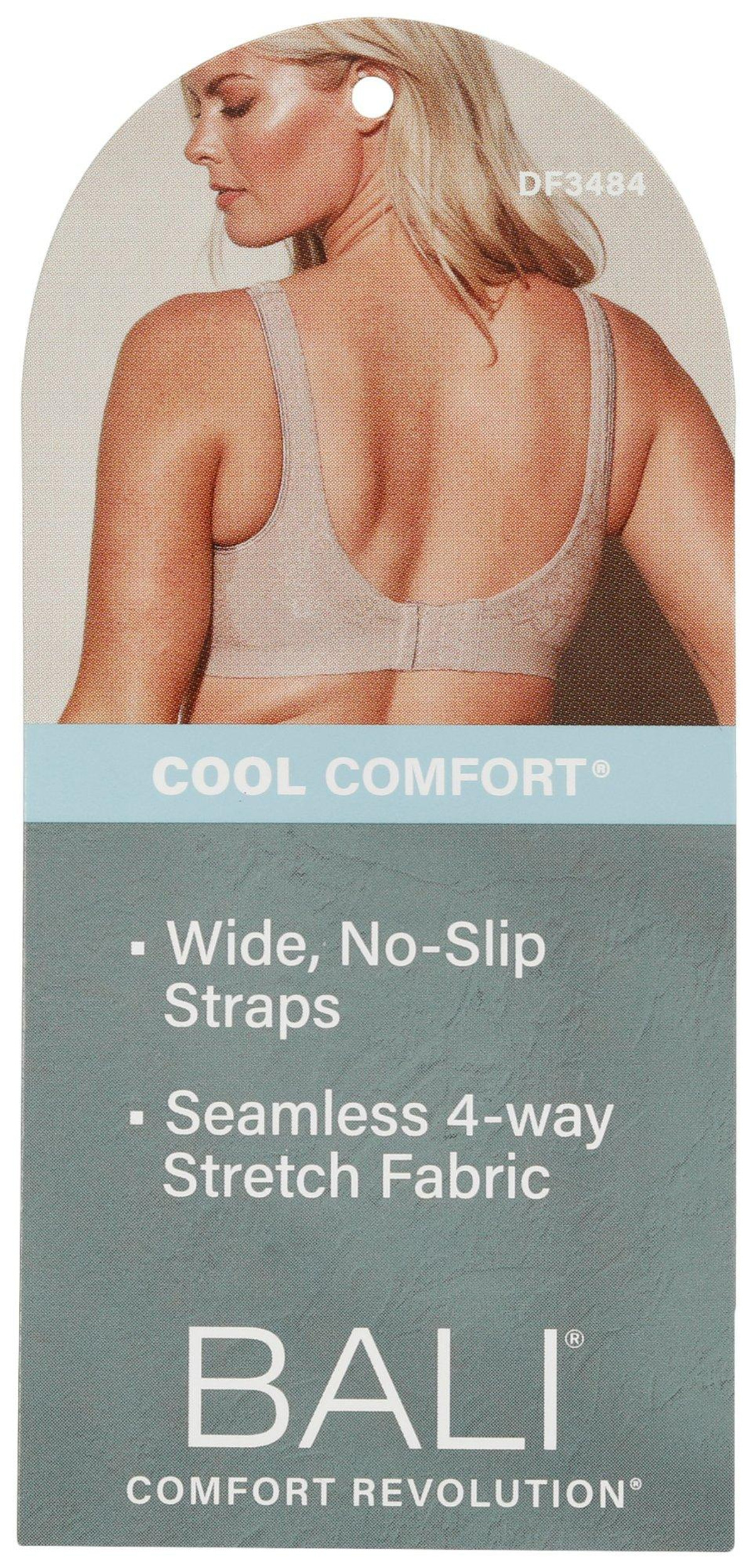 Comfort Revolution Sure Size Wirefree Bra by Bali has four easy sizes, all with great support featuring stay in place straps and back. Unique fabric and design offer flexibility for a perfect fit every time. S=36C&D/M=38D&DD/L=40D&DD/XL=42D&DD. Style 3484