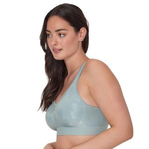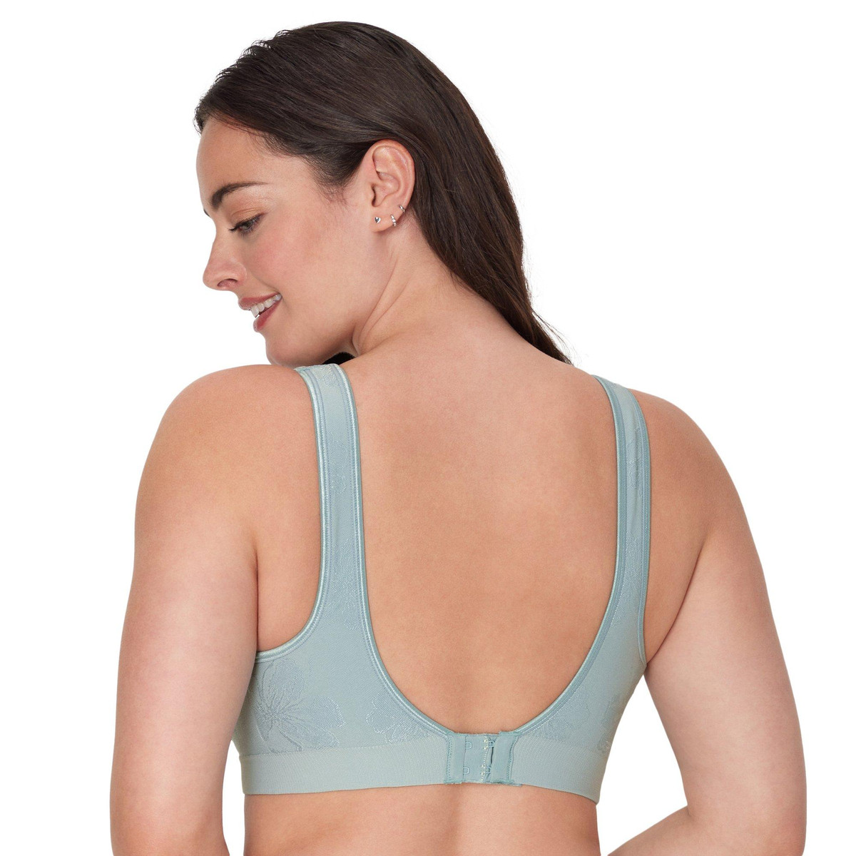 The Cool Comfort fabric Wirefree bra by Bali has patented knitting technology that targets back and side support. 360 soft comfort band and ultra-thin stretch foam provides comfort and fit flexibility. Built-up straps provide comfort. Comfort U Design ensures stay in place straps. Style #3488.