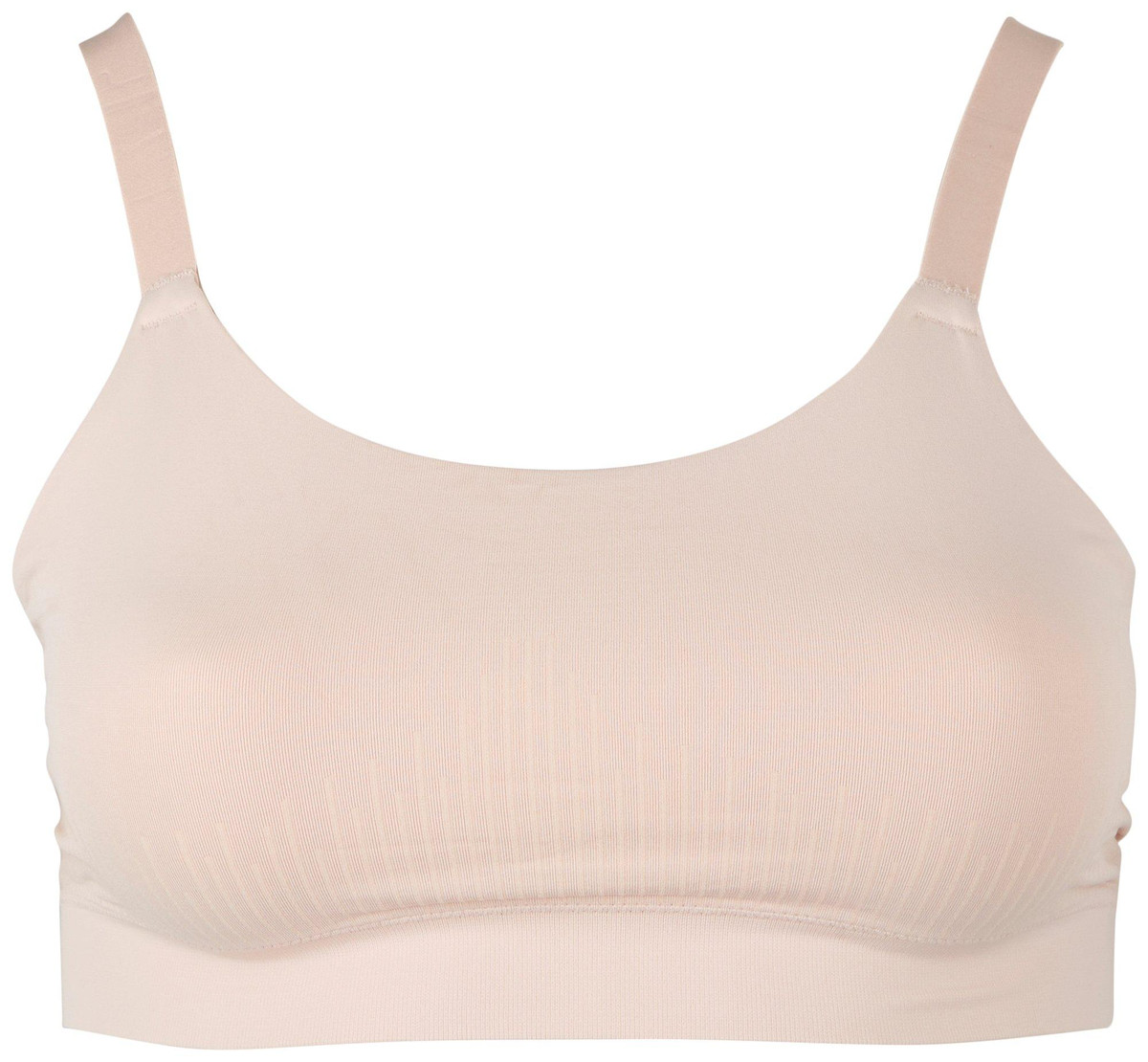 Smooth, soft, and comfy, this wireless bralette features a solid color design on a super-soft moisture-wicking nylon blend fabric to keep you cool and comfortable, pullover styling for easy on and off, seamless construction, and adjustable straps. Fabrication 92% nylon, 8% spandex. Style DFMSBR.