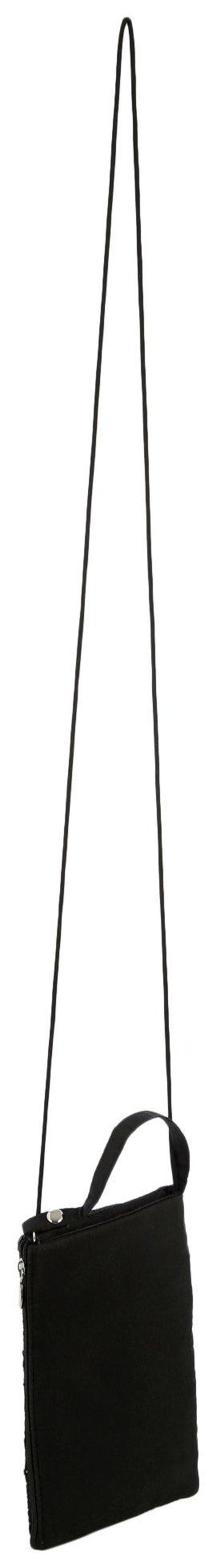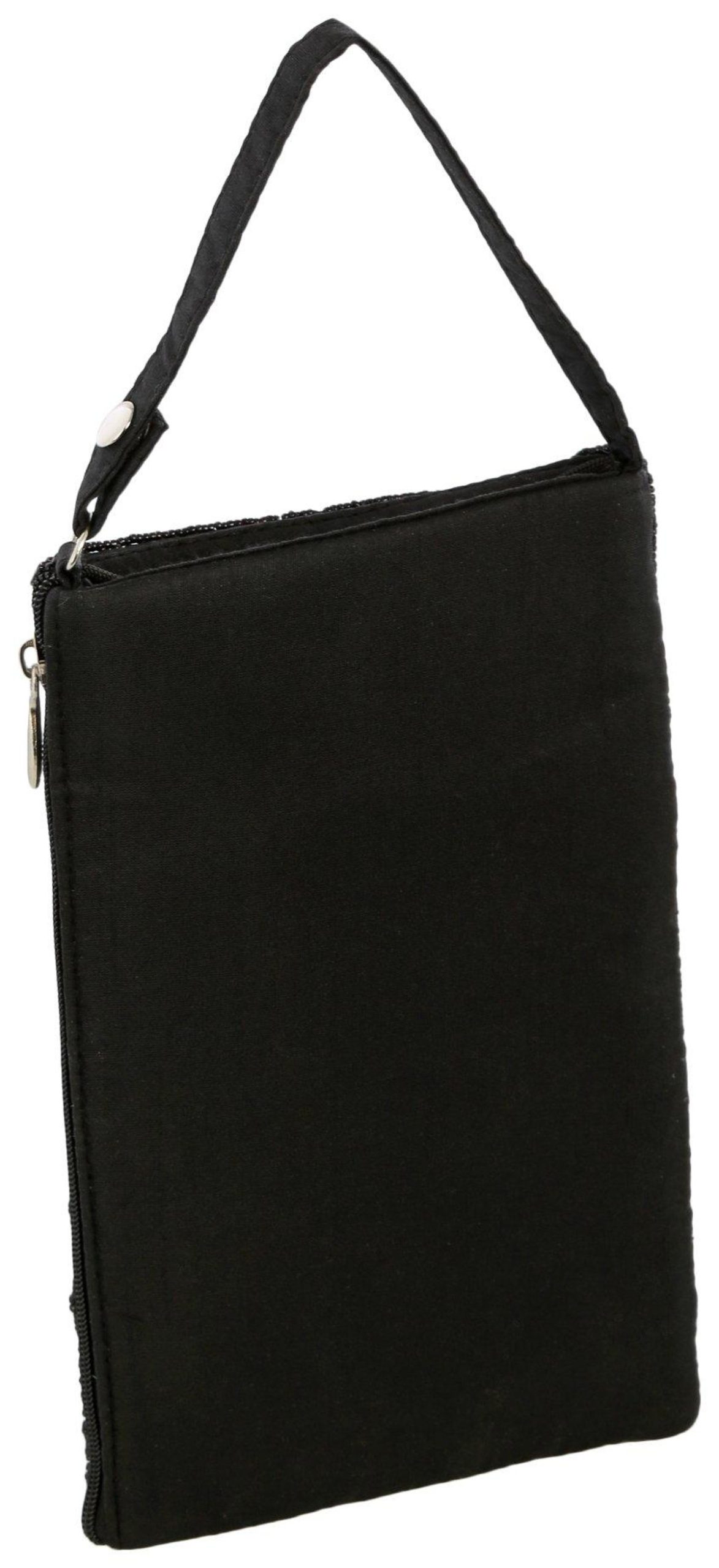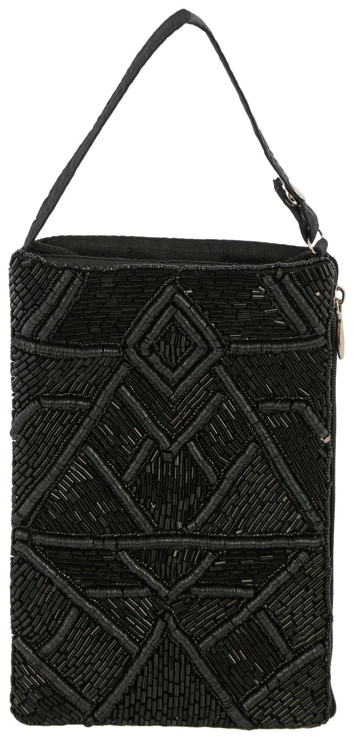 Keep your valuables nearby and stylish in this colorful wristlet! It features a bright design composed of colorful beads, wristlet strap and cord shoulder strap, a fully zipped top, and a slip main compartment. Measures approximately 5 in x 8 in.