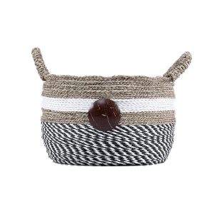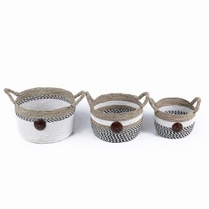 Baum 3 Pc. Raffia & Seagrass with Coco Buttons Storage Bins