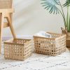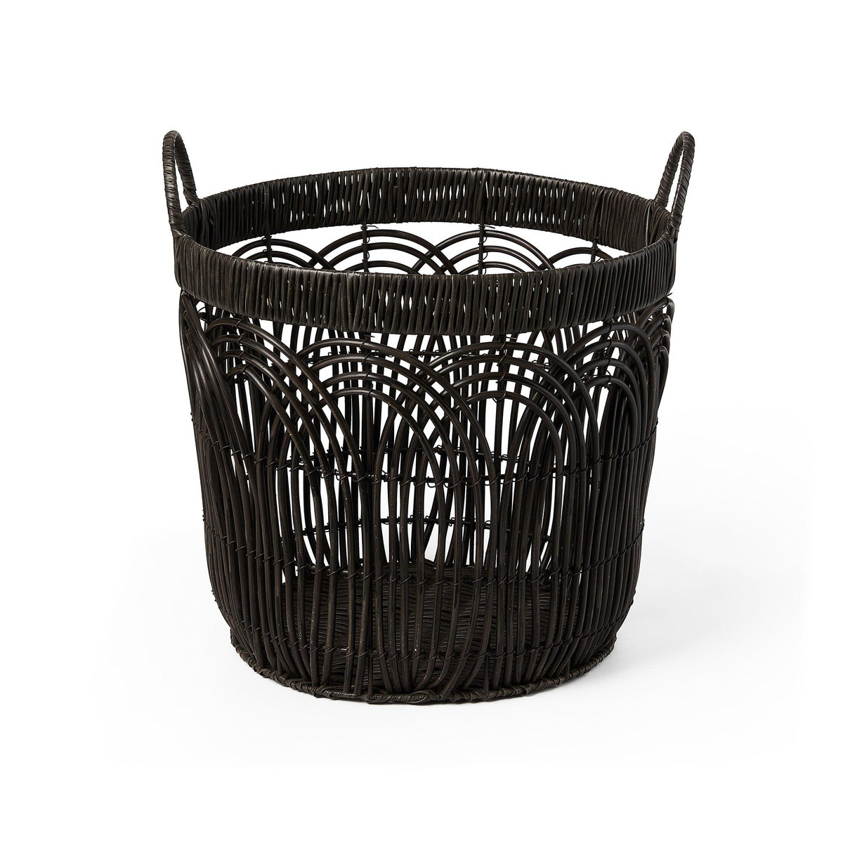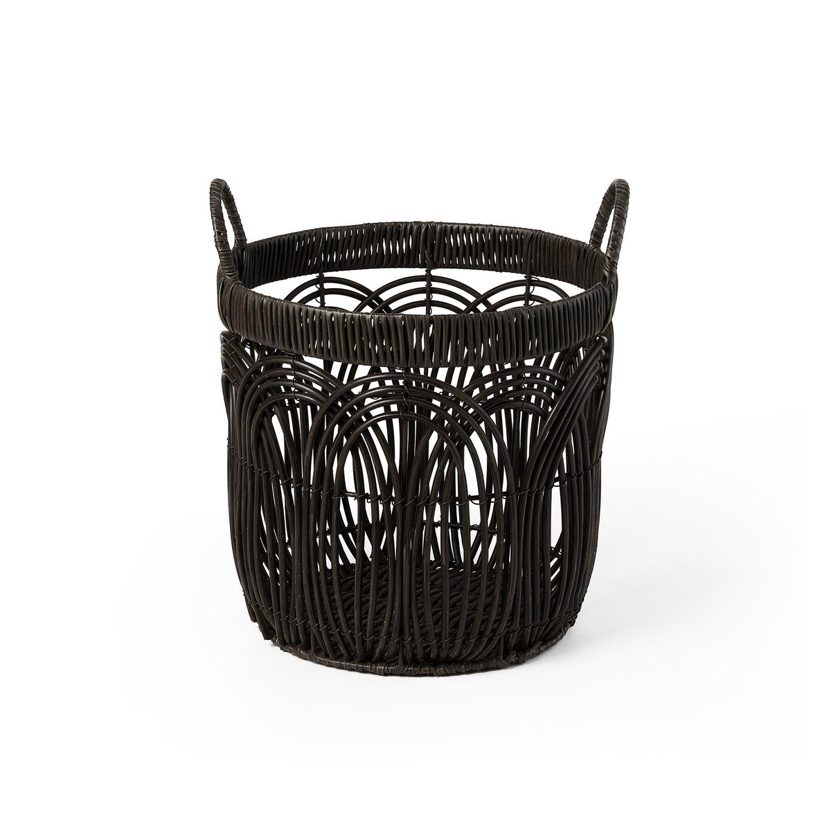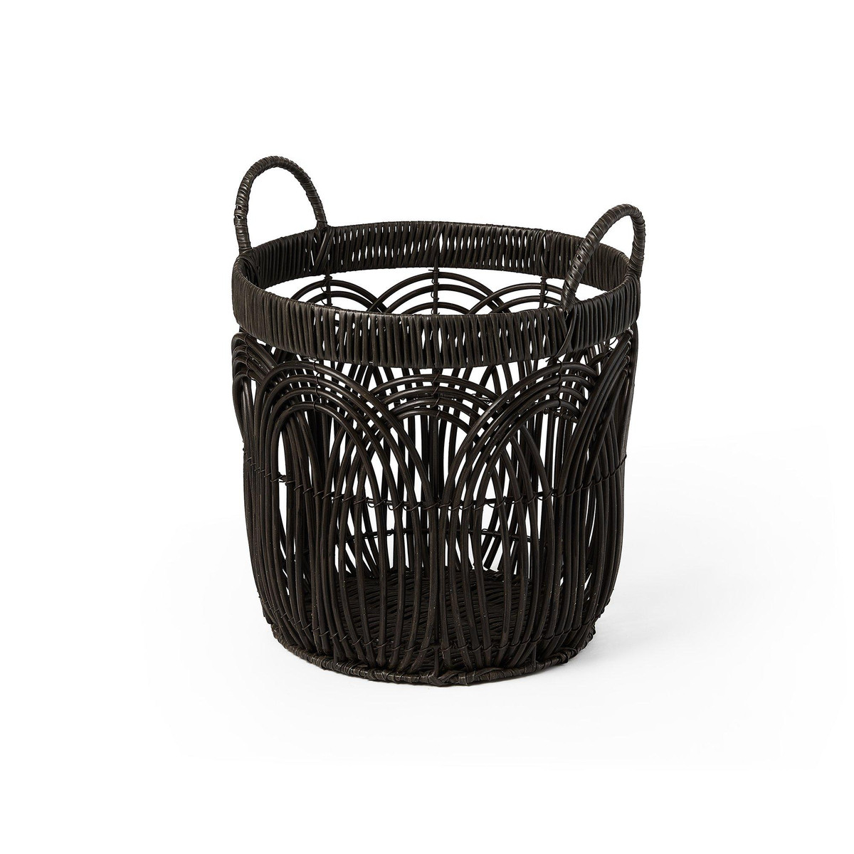 This set of three Round Faux Wicker Storage seamlessly blends form and function to elevate your décor. The durable build ensures longevity, while the sleek black finish complements any modern, boho, or minimalist space. Large- 14.2 in. x 14.2 in. x 12.6 in., Medium – 12.2 in. x 12.2 in. x 11.4 in., Small – 10.2 in. x 10.2 in. x 10.2 in.