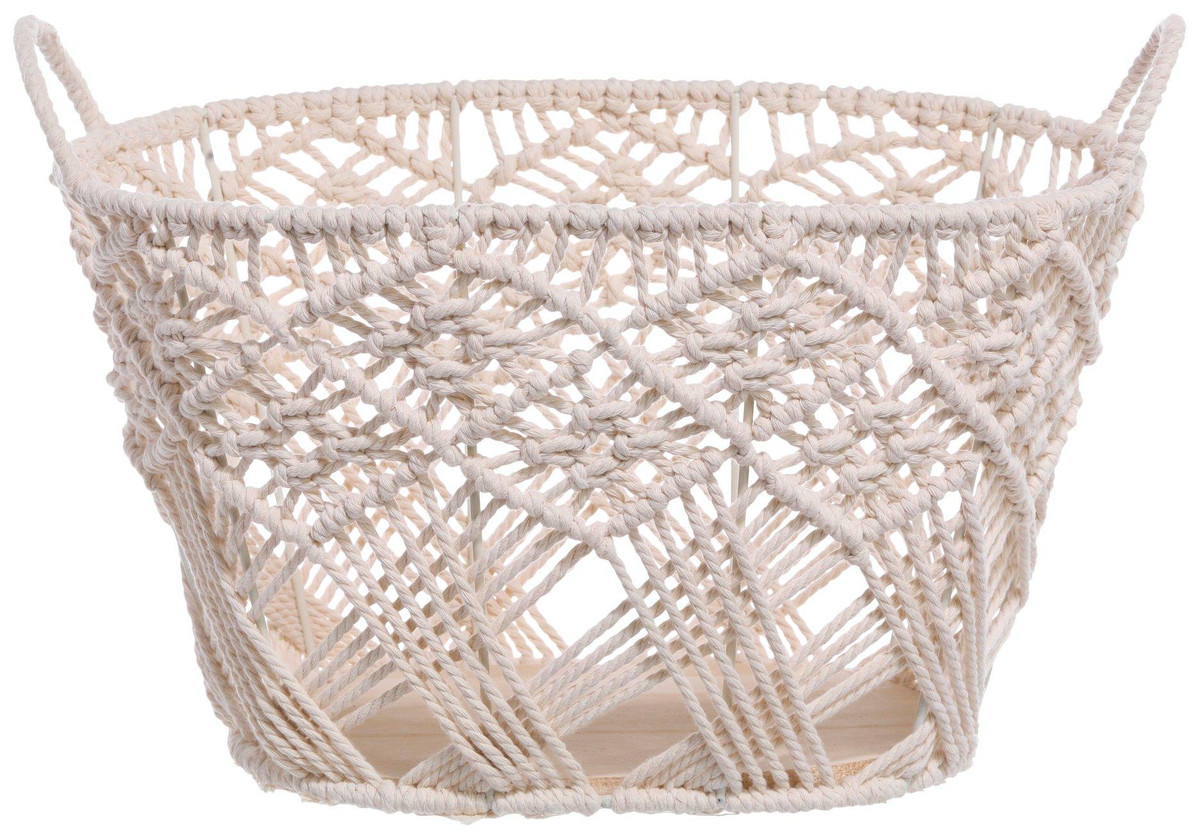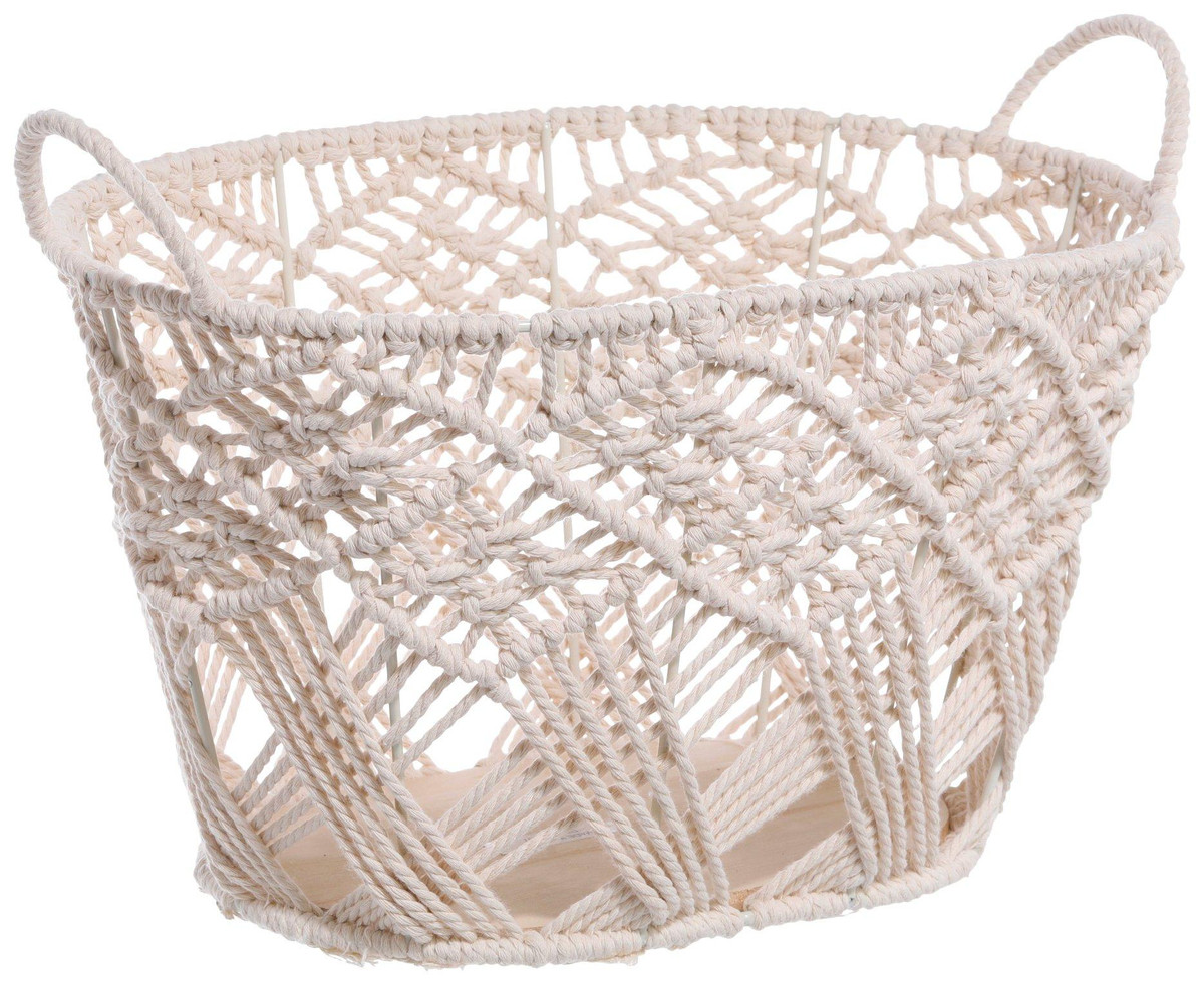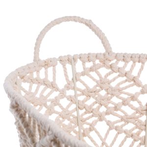 Soft textures meet sturdy design in the Oval Macrame Cotton Rope Storage Bin, where functionality blends with effortless charm. Crafted from durable cotton rope, its intricate macrame detailing adds a touch of artisanal beauty to your space, making storage feel like an elegant statement rather than an afterthought. Measures 14 in x 9 in x 10 in.