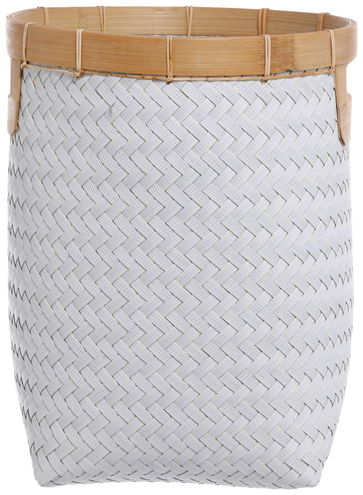 Natural simplicity meets refined craftsmanship in the Round Square Bottom Bamboo Storage Basketa unique fusion of organic texture and structured design. Handwoven from sustainable bamboo, its round top flows seamlessly into a square base, creating a striking shape that offers both visual appeal and sturdy functionality. Measures 11 in x 11 in x 14 in.