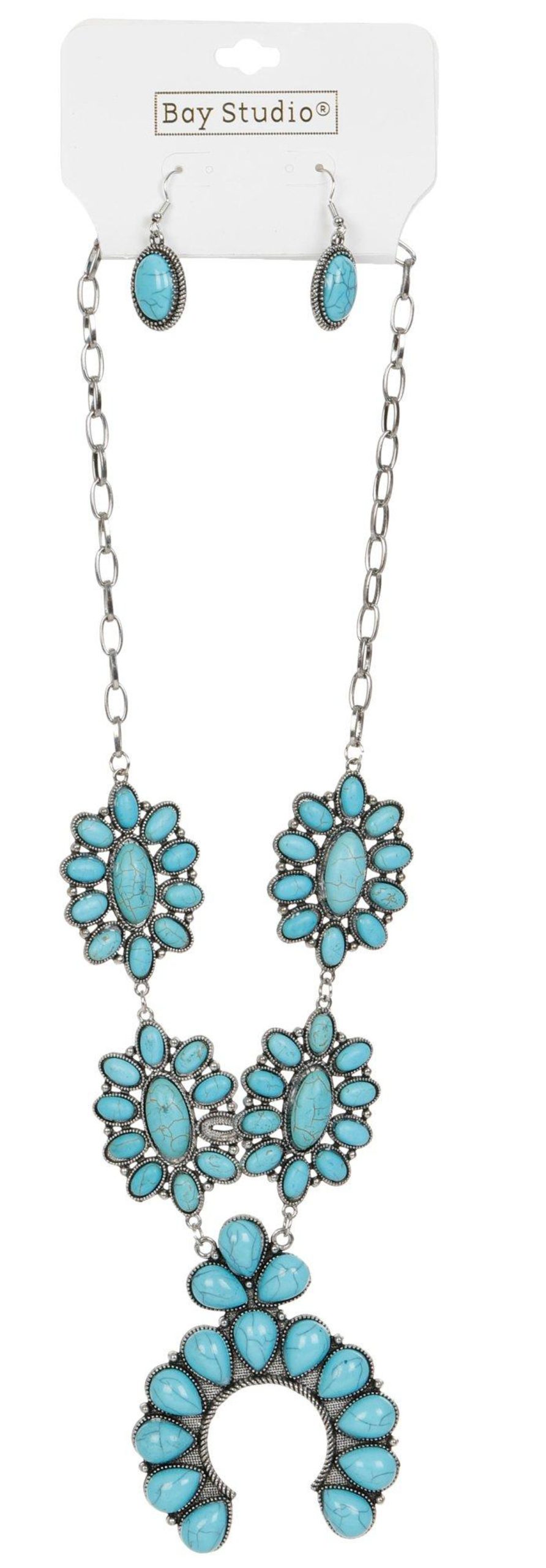 Elevate your accessory game with our 2-Piece Earrings and Necklace Set! This stunning set features turquoise-style stones that add a pop of color and a touch of elegance to any outfit. The fishhook dangle earrings are lightweight and stylish, perfect for everyday wear or special occasions. Complementing the earrings, the pendant necklace showcases a matching turquoise-style stone with silver-tone accents, creating a cohesive and chic look.
