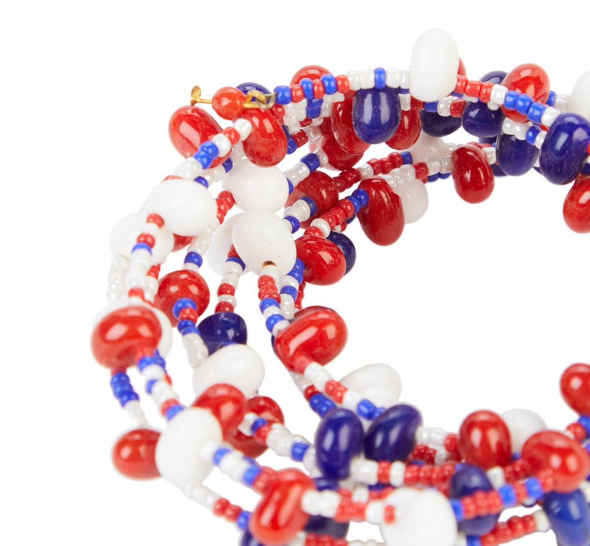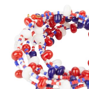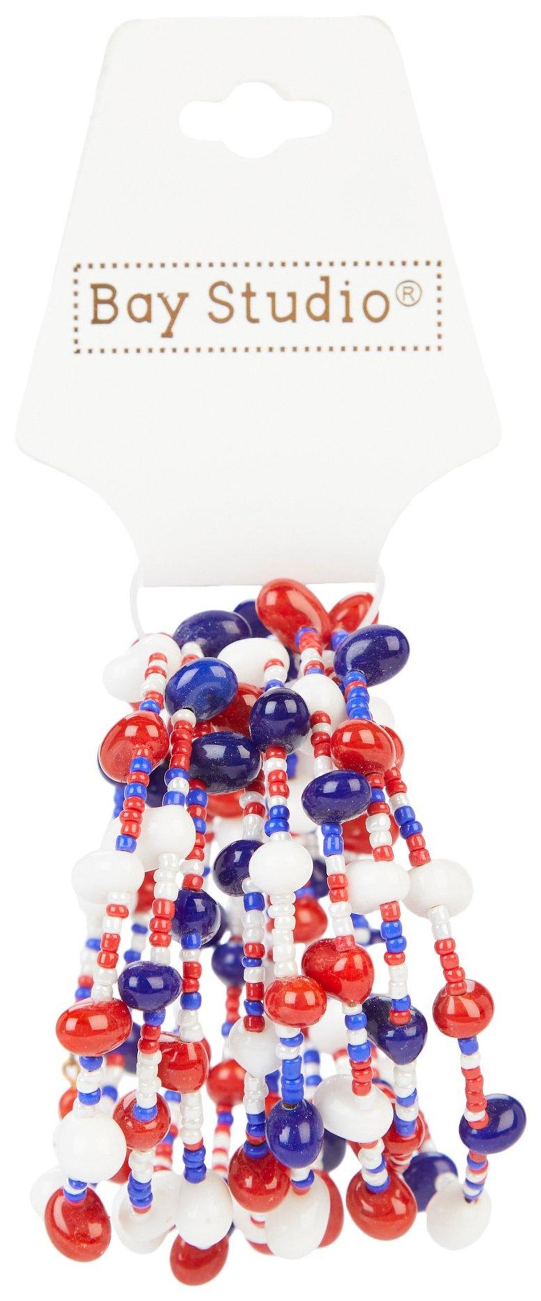 Add some patriotisim to your look with this Red White & Blue Bead Wide Bracelet. Featuring vibrant jellybean beads and a coil design, it offers easy slip-on style and all-day comfort. Perfect for layering or wearing solo.